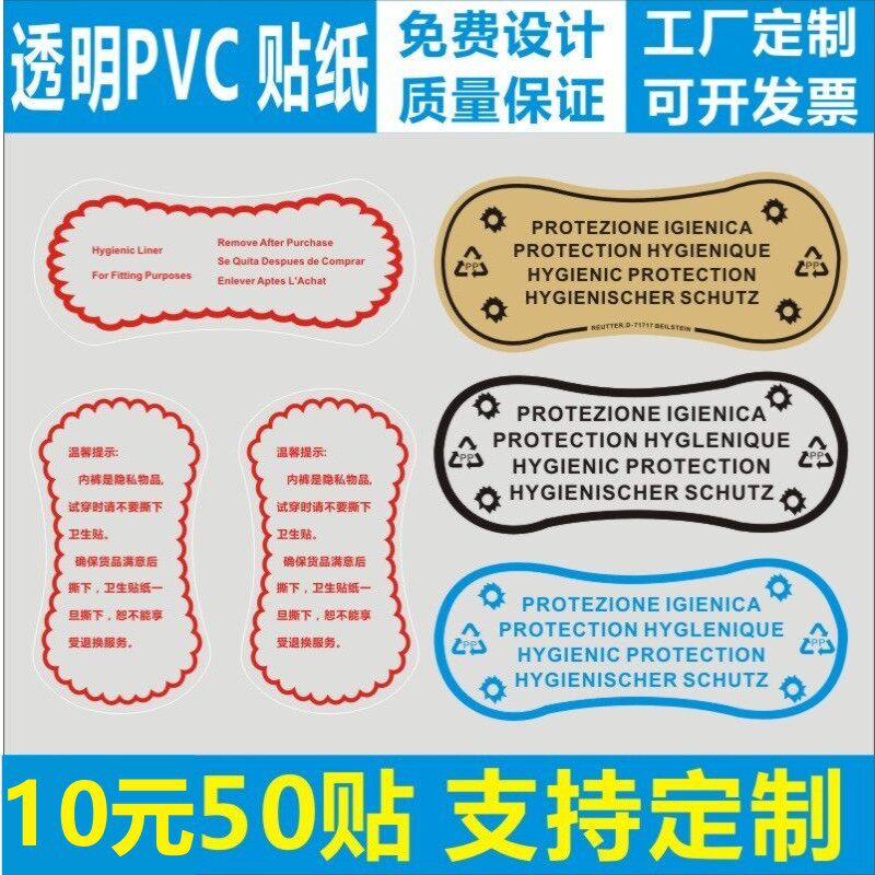 📚 现货卫生贴纸内裤试穿透明不干胶粘贴可撕贴泳衣卫生警示贴标签m