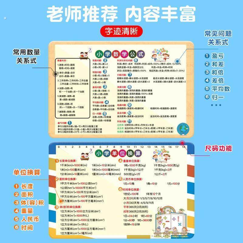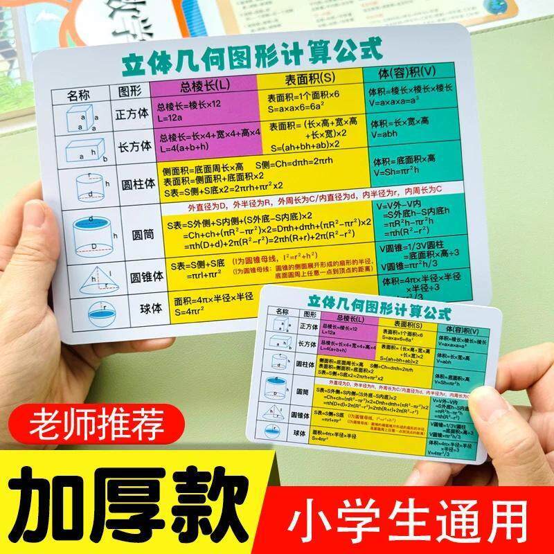 📚 小学通用 数学单位换算平面立体几何图形计算公式速记卡片加厚款