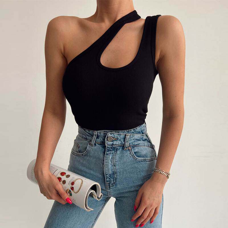 📚 Pit-Striped Knit Tank Top Irregular Hollow Ribbed Camisole