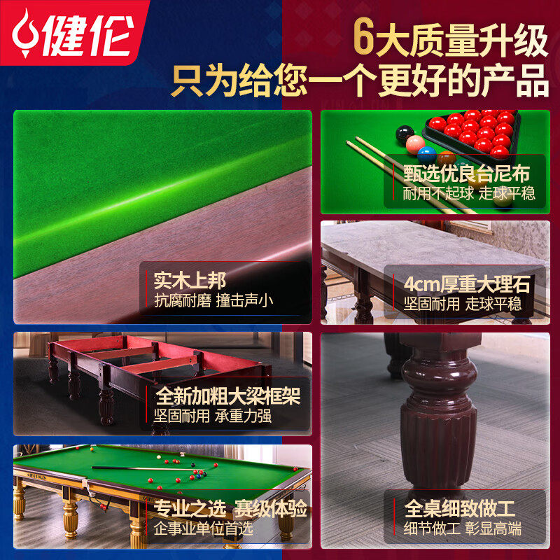 📚 健伦台球桌标准斯诺克家用商用桌球台成人比赛专用斯诺克台球案子