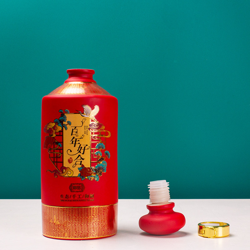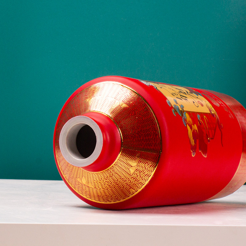 📚 结婚哑光陶瓷酒瓶1斤装 婚庆红色酒席家用送礼密封空酒壶酒罐酒坛