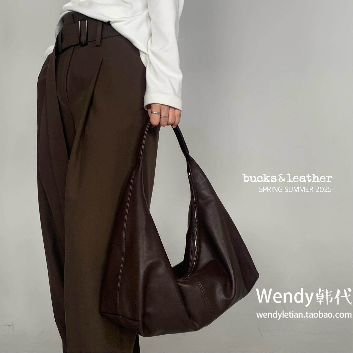 📚 韩国代购小众bucks leather 新款羊皮单肩手提腋下大容量托特包