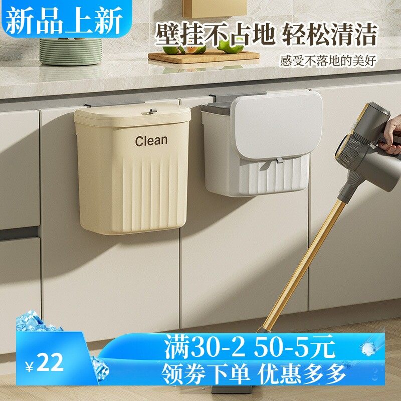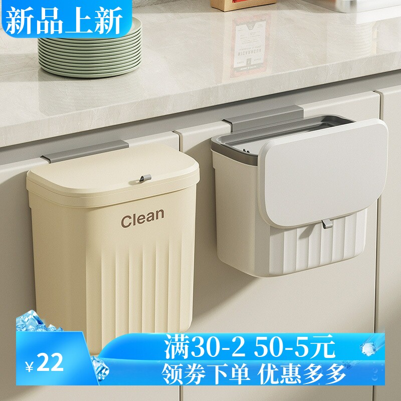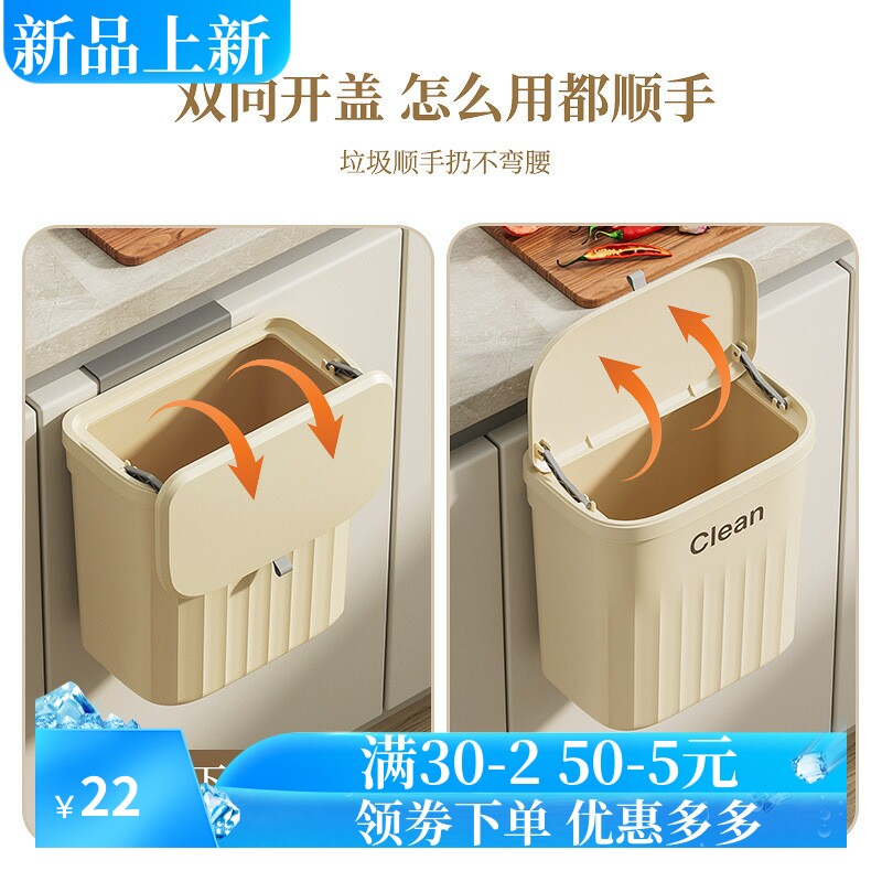 📚 家用塑料翻盖挂壁垃圾桶厨房浴室卫生间夹缝挂壁收纳压圈垃圾桶