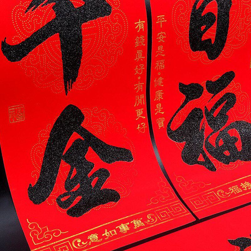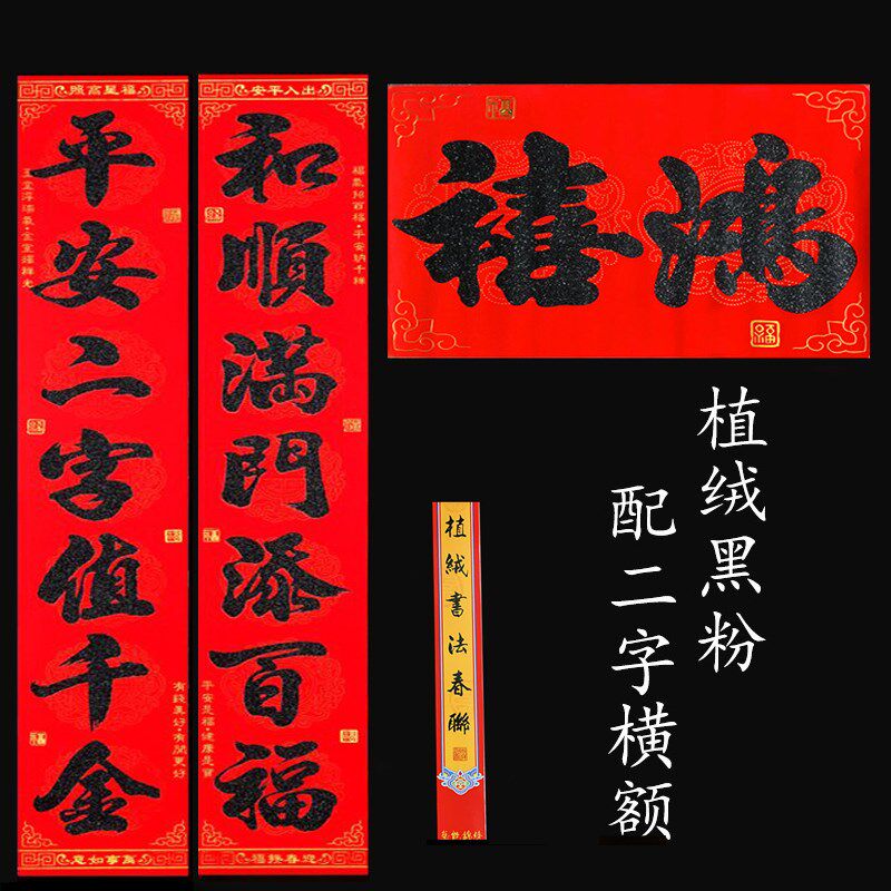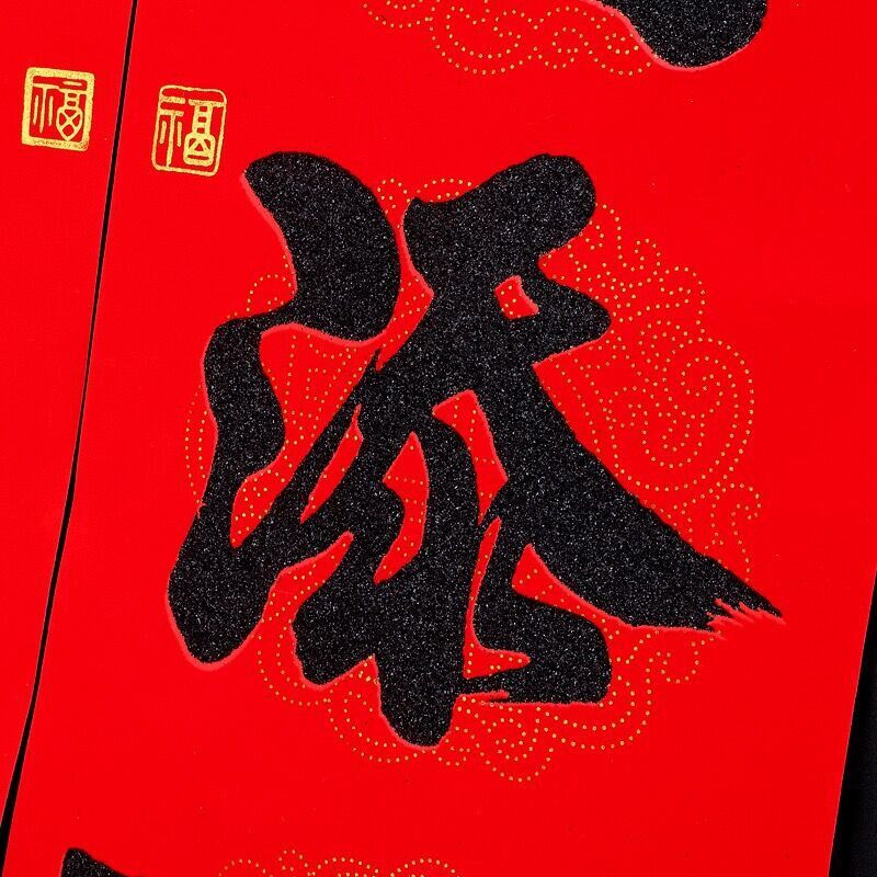 📚 春节对联二字横额七字春联粤西大门对联兔年新Q款二字横批植绒黑