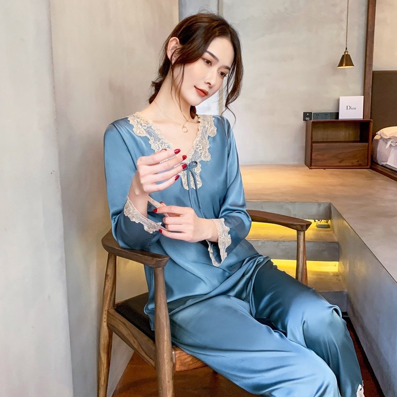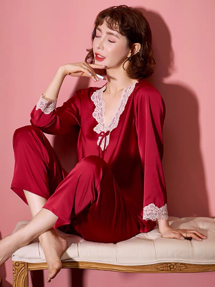 📚 睡衣女春秋季夏天睡衣女夏款冰丝凉快丝绸家居服女士加大码套装
