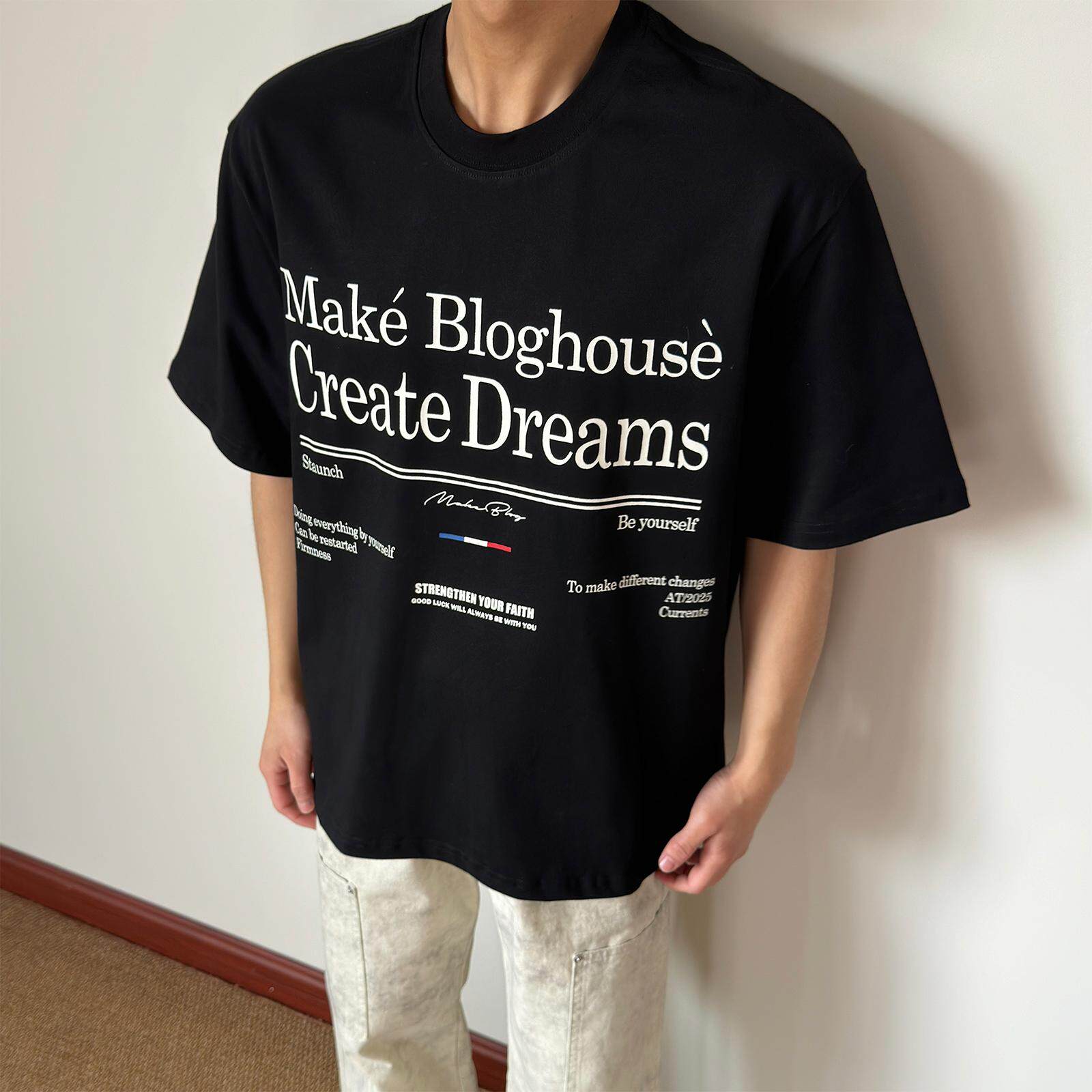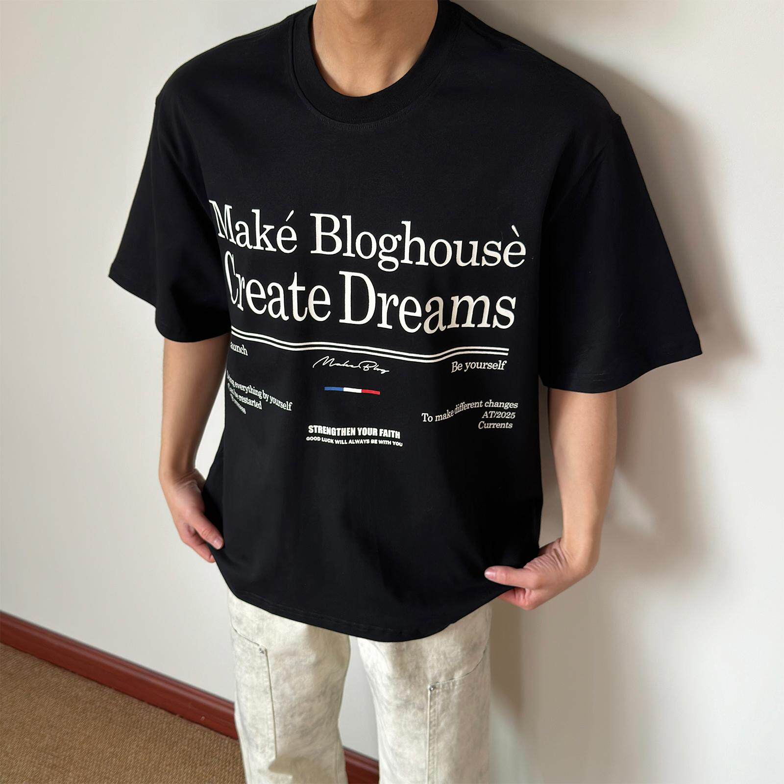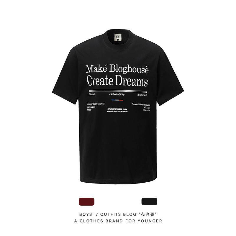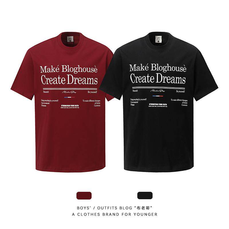 📚 布老哥Blog美式街头重磅宽松短袖潮流百搭撞色印花圆领T恤夏D112
