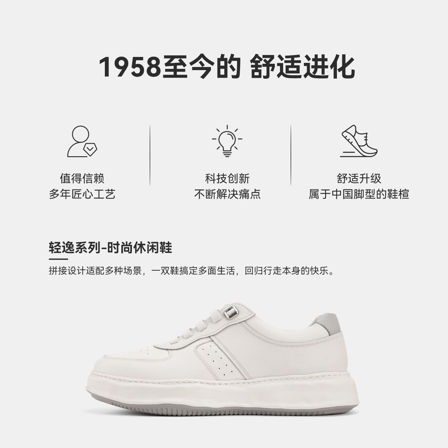 📚 暇步士百搭免系板鞋男春秋新款真皮休闲舒适厚底运动鞋通勤小白鞋