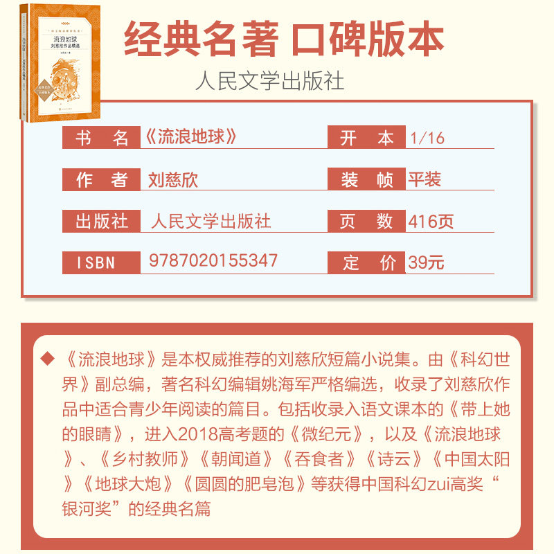 #流浪地球书 #刘慈欣作品精选少年科幻小说 #中小学生课外阅读 #中国科普小说 #世界名著 #人民文学出版社 #种草笔记