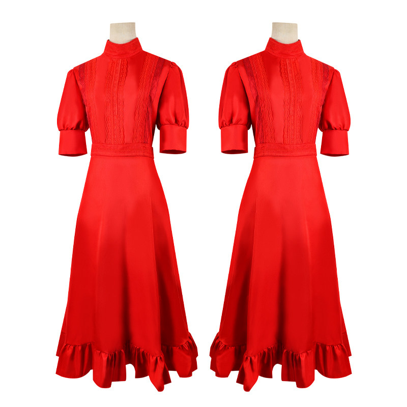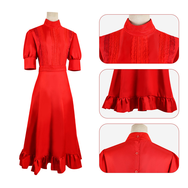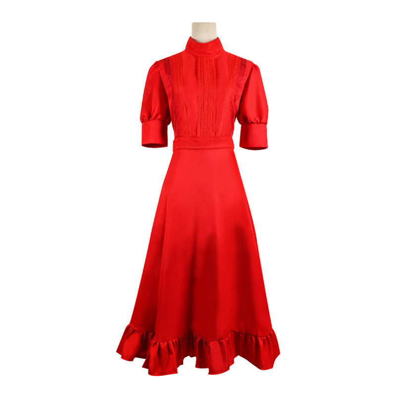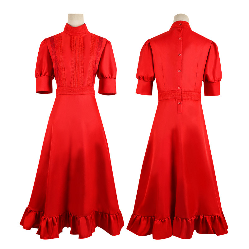 📚 美剧欲珠cos服 X前传珀尔红裙连衣裙短袖收腰鱼尾万圣节cosplay服