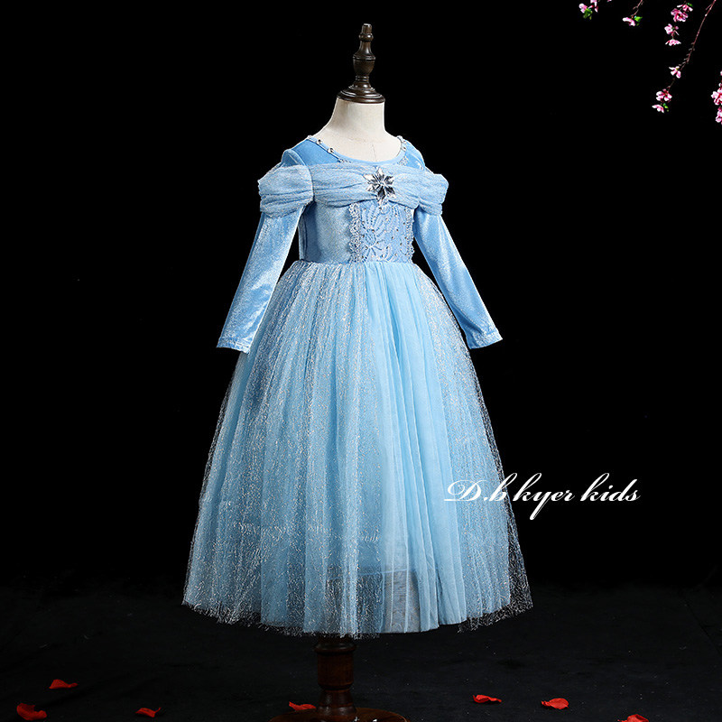 📚 女童灰姑娘冰雪奇缘公主裙爱莎cos儿童生日艾莎礼服连衣裙子长袖