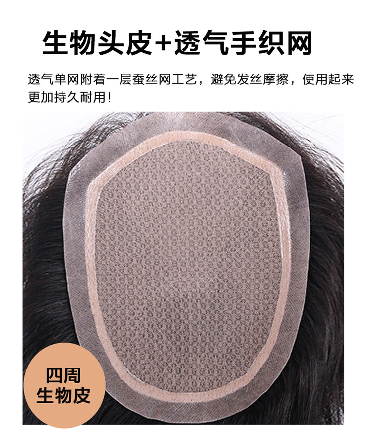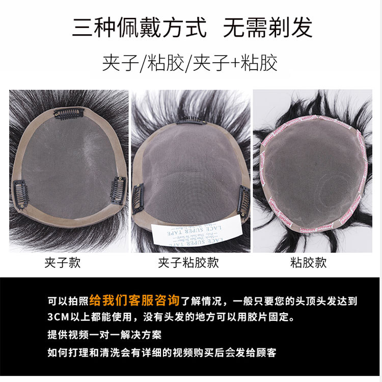 📚 递针头旋假发男短发寸头生物头皮头顶秃顶补发片真发刘海假发长发