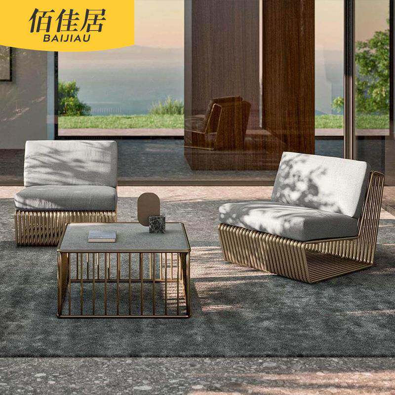 📚 户外沙发组合庭院别墅花园露天阳台休闲不锈钢设计师款铝合金茶几