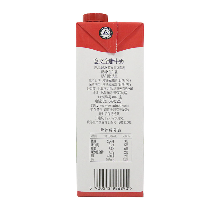📚 【下拉享优惠】波兰进口意文全脂纯牛奶1L*6盒整箱营养早餐牛奶