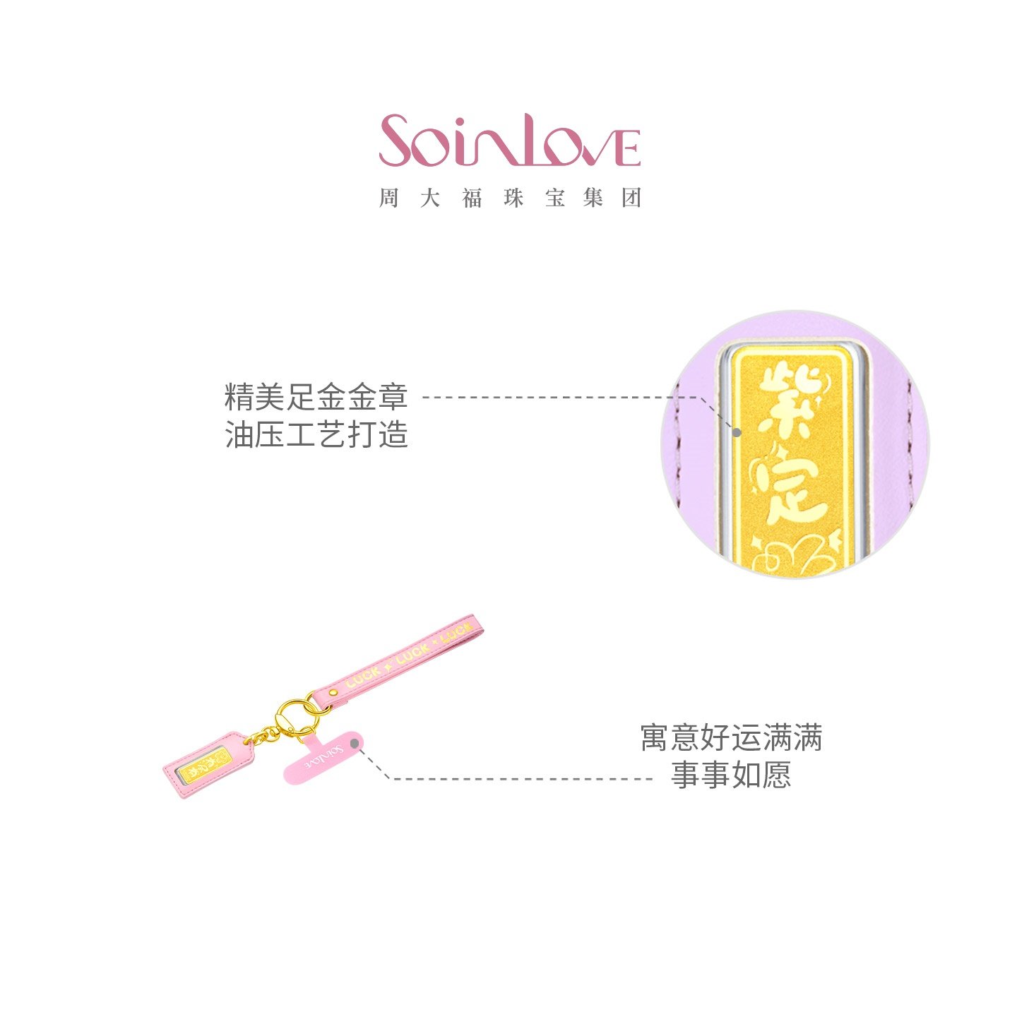 📚 周大福SOINLOVE 宝藏女孩金彩好运黄金足金金章手机挂件新年礼物