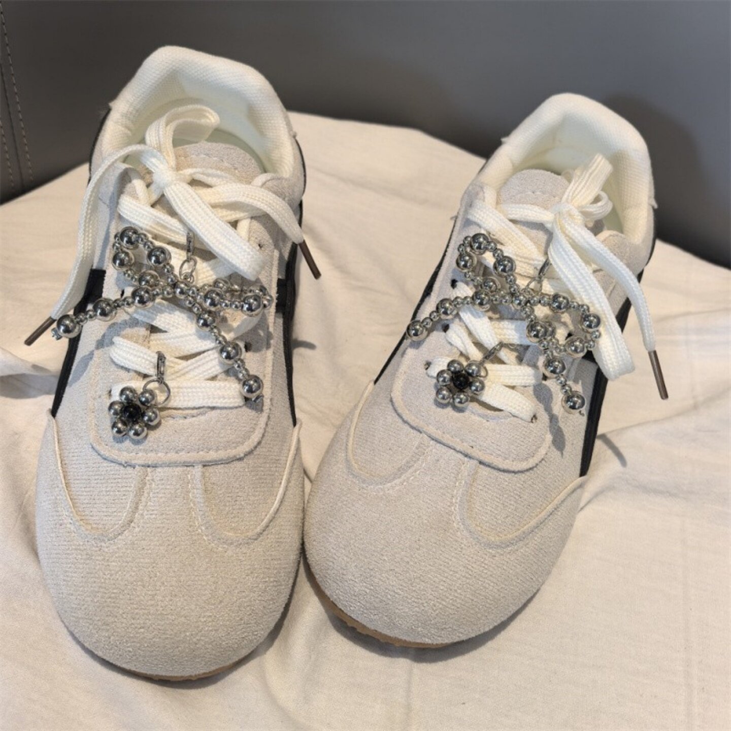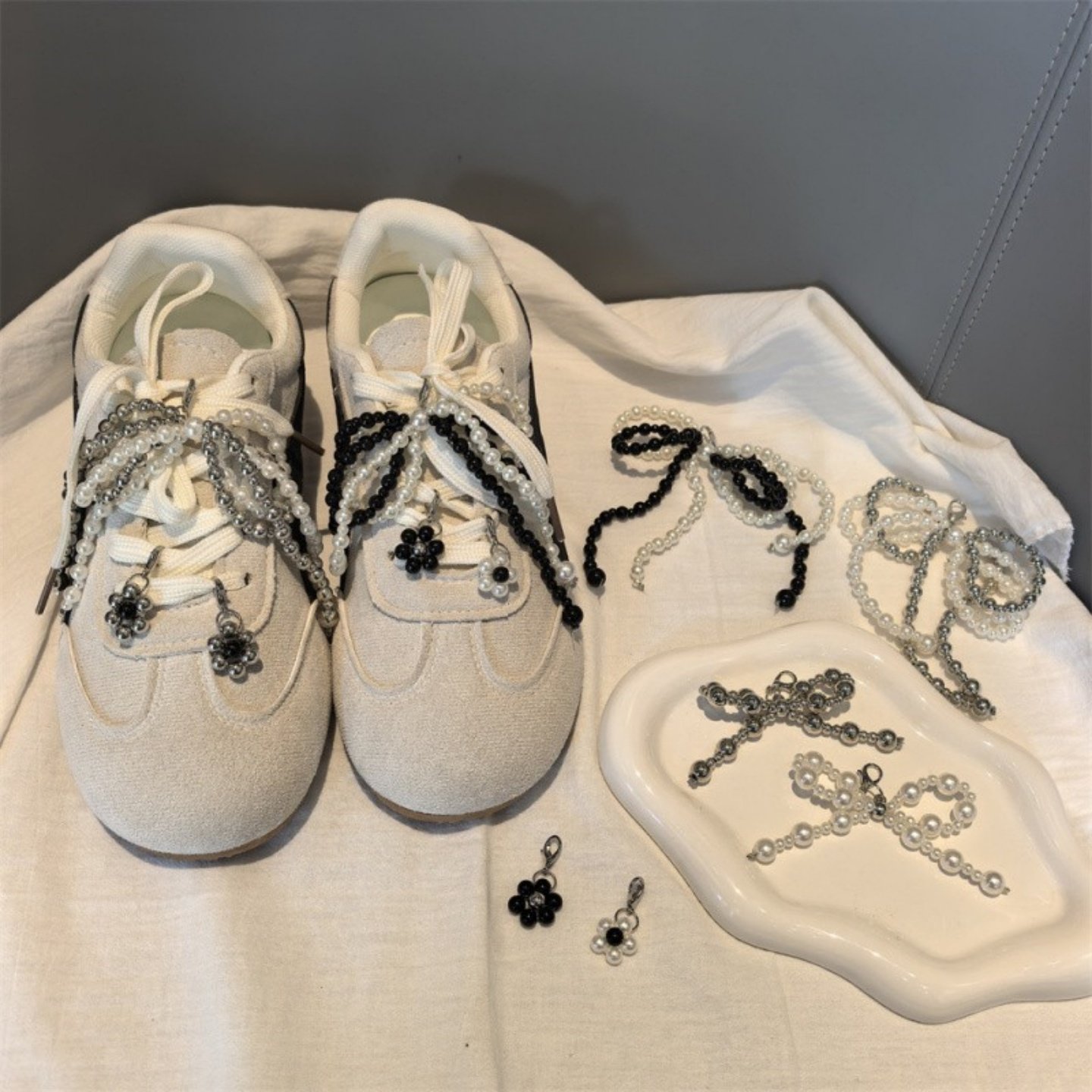 📚 韩版芭蕾风双色珍珠蝴蝶结鞋花高级感串珠小花鞋子装饰德训鞋鞋扣
