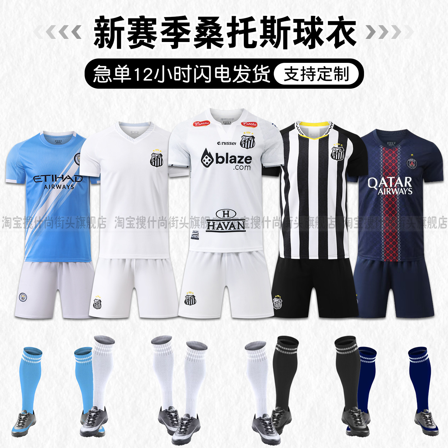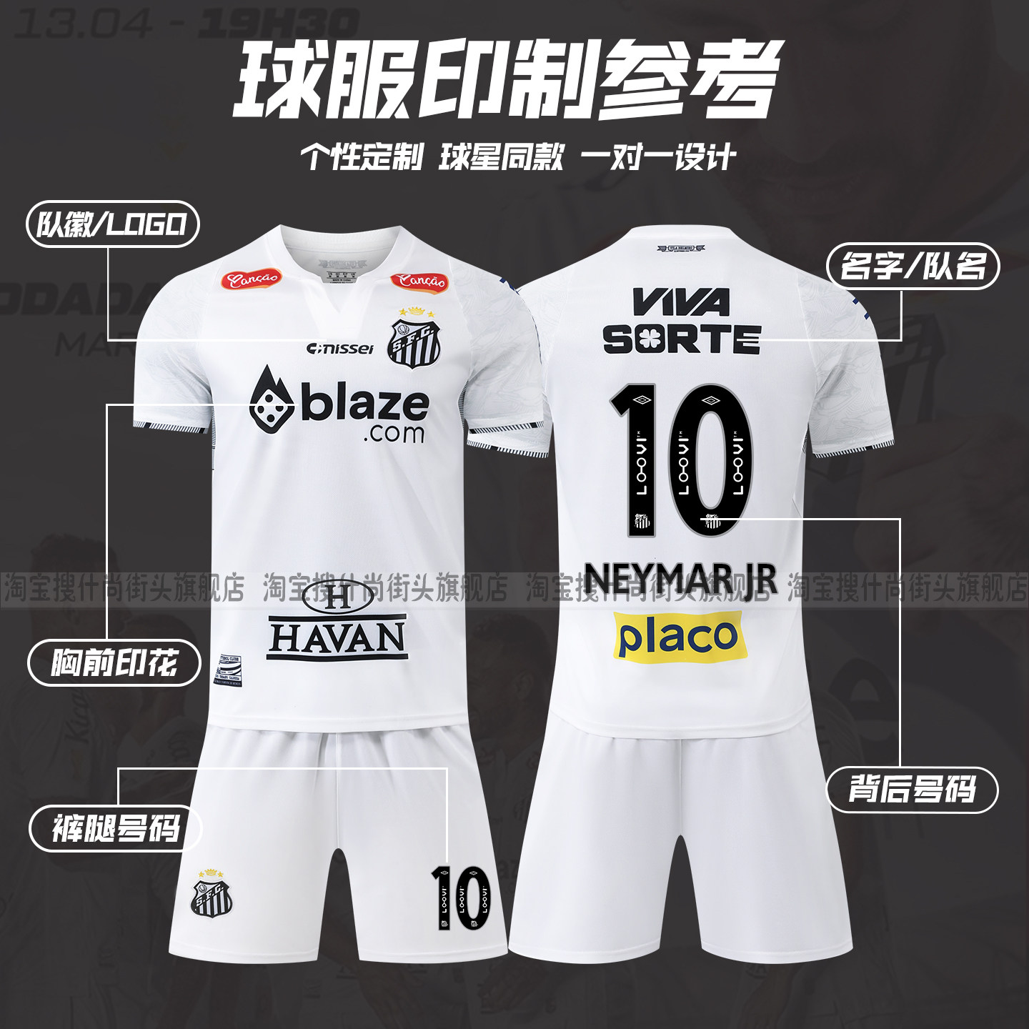 📚 桑托斯球衣10号内马尔主场客场足球服套装男成人儿童比赛队服印字