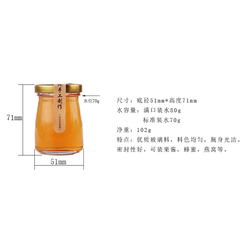 📚 小号100ml丝口布丁玻璃瓶酸奶杯含铁盖密封果酱瓶果冻燕窝瓶 可蒸