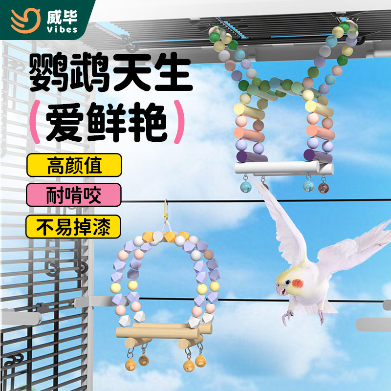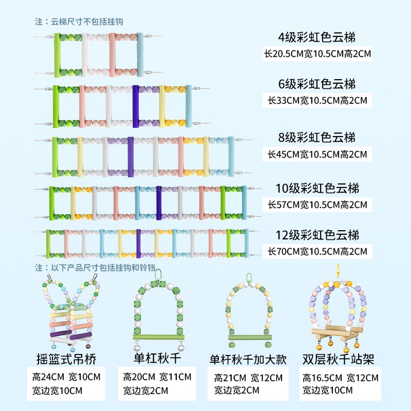 📚 鹦鹉秋千虎皮玄凤吊桥彩色云梯爬梯啃咬攀爬吊圈鸟笼配件鸟用品
