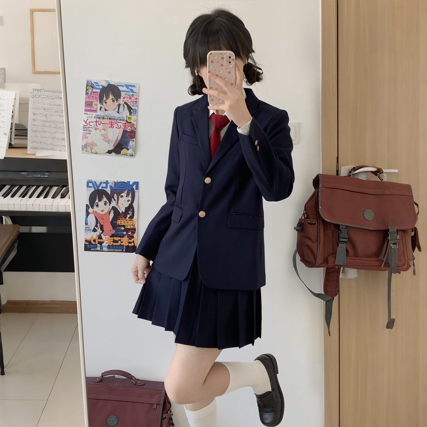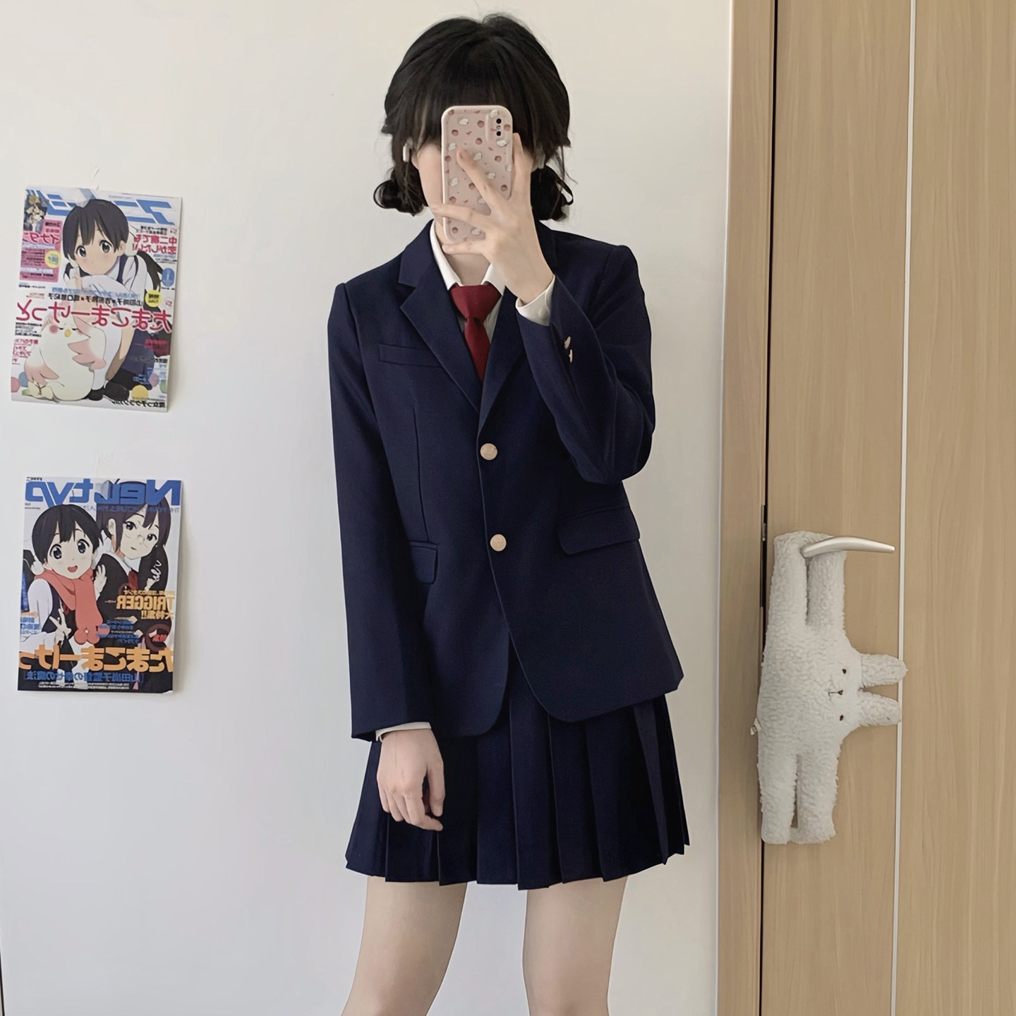 📚 樱花家族jk制服绀色西服西裤校供感DK西装外套套装学院风学生男女