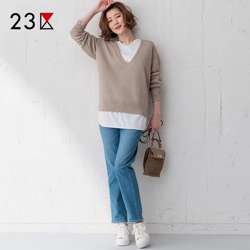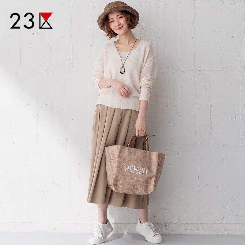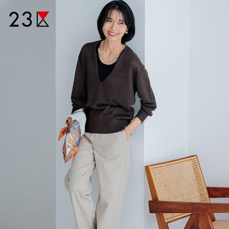📚 23区日系秋季通勤宽松V领套头纯亚麻针织衫休闲编织上衣商场同款
