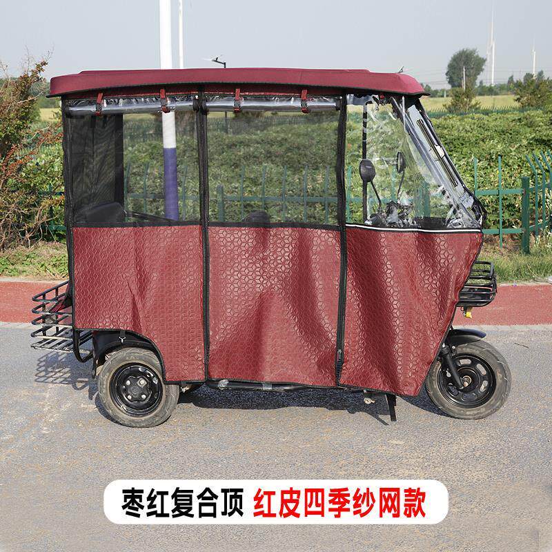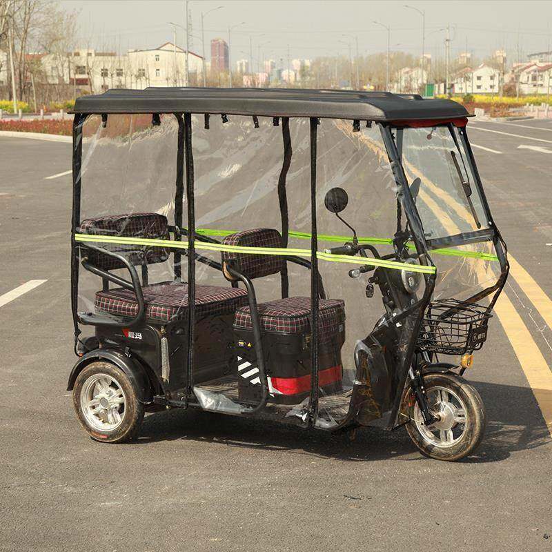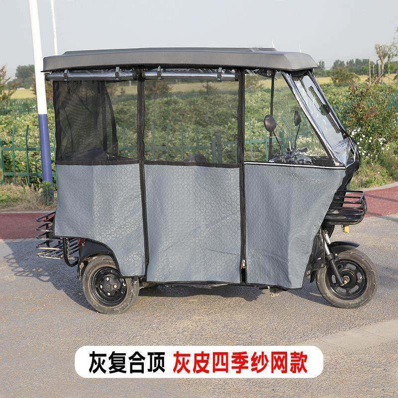 📚 小巴士三轮车车棚全封闭半透明遮雨蓬休闲车篷加厚皮革雨帘全透明