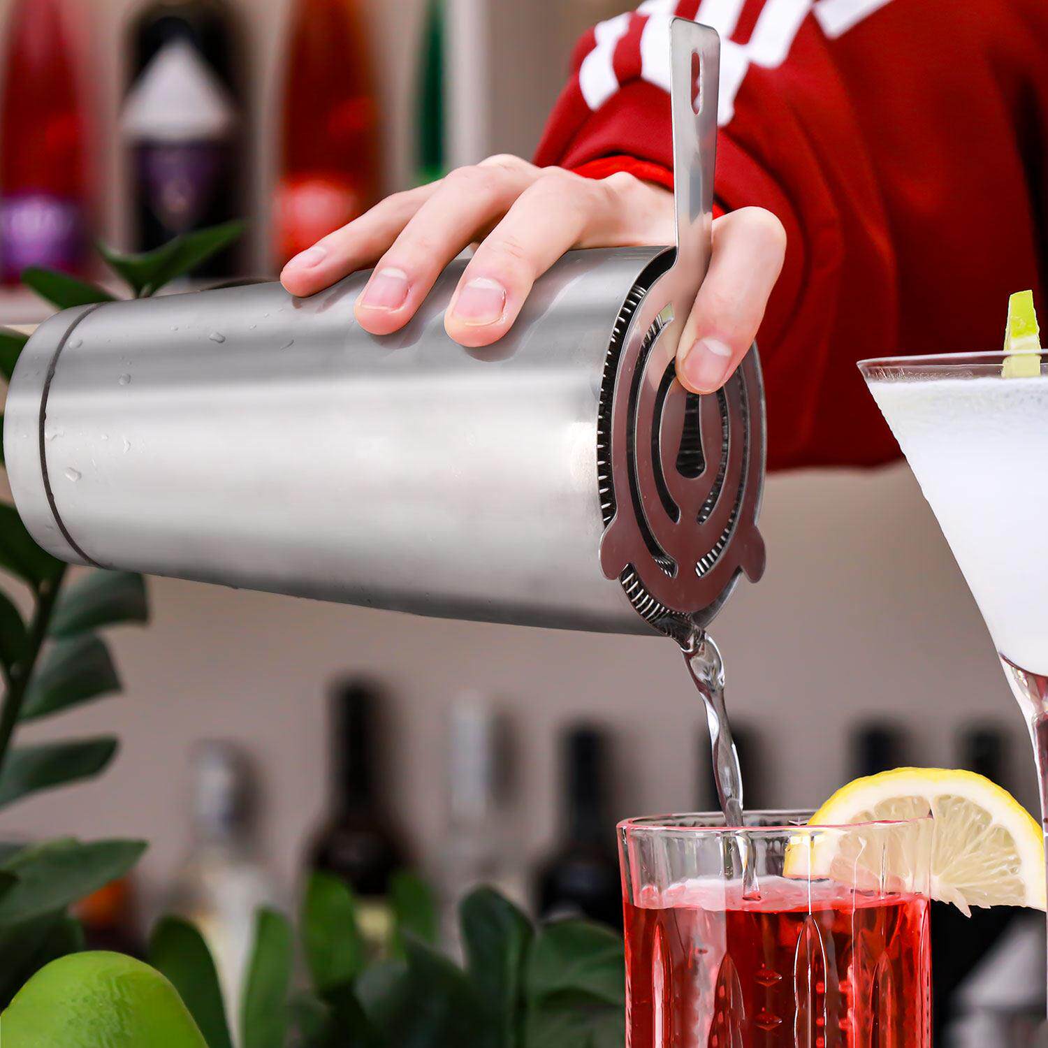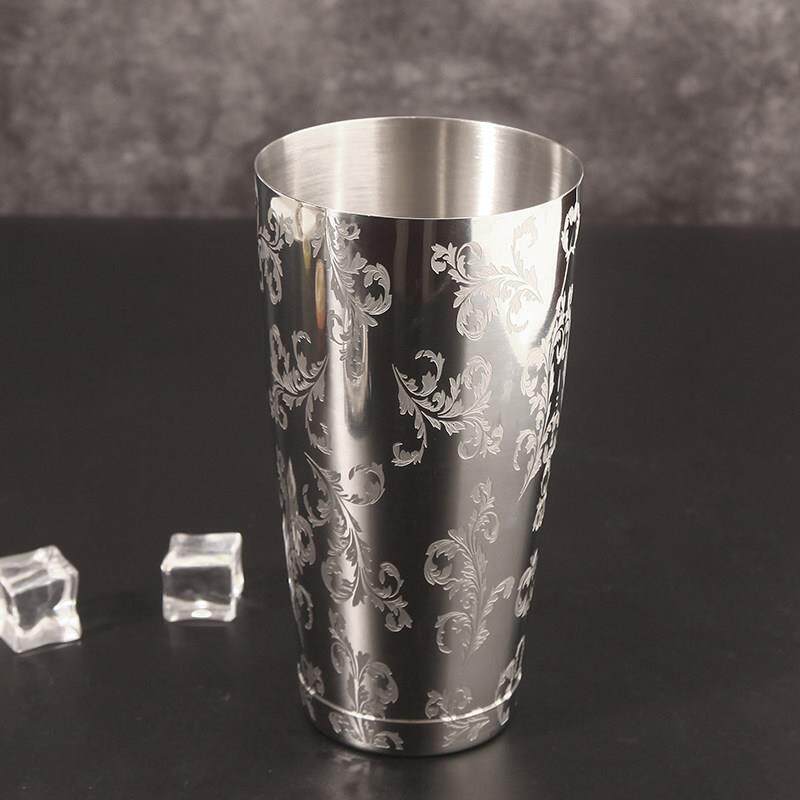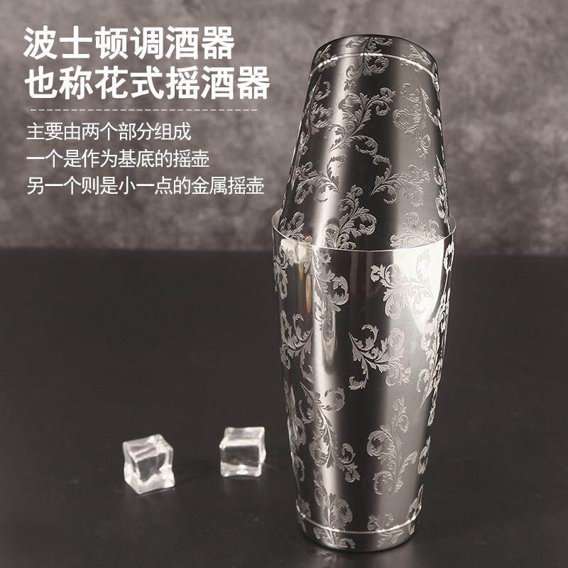 📚 精雕花纹304不锈钢专业波士顿调酒套装酒吧鸡尾酒摇壶工具四件套