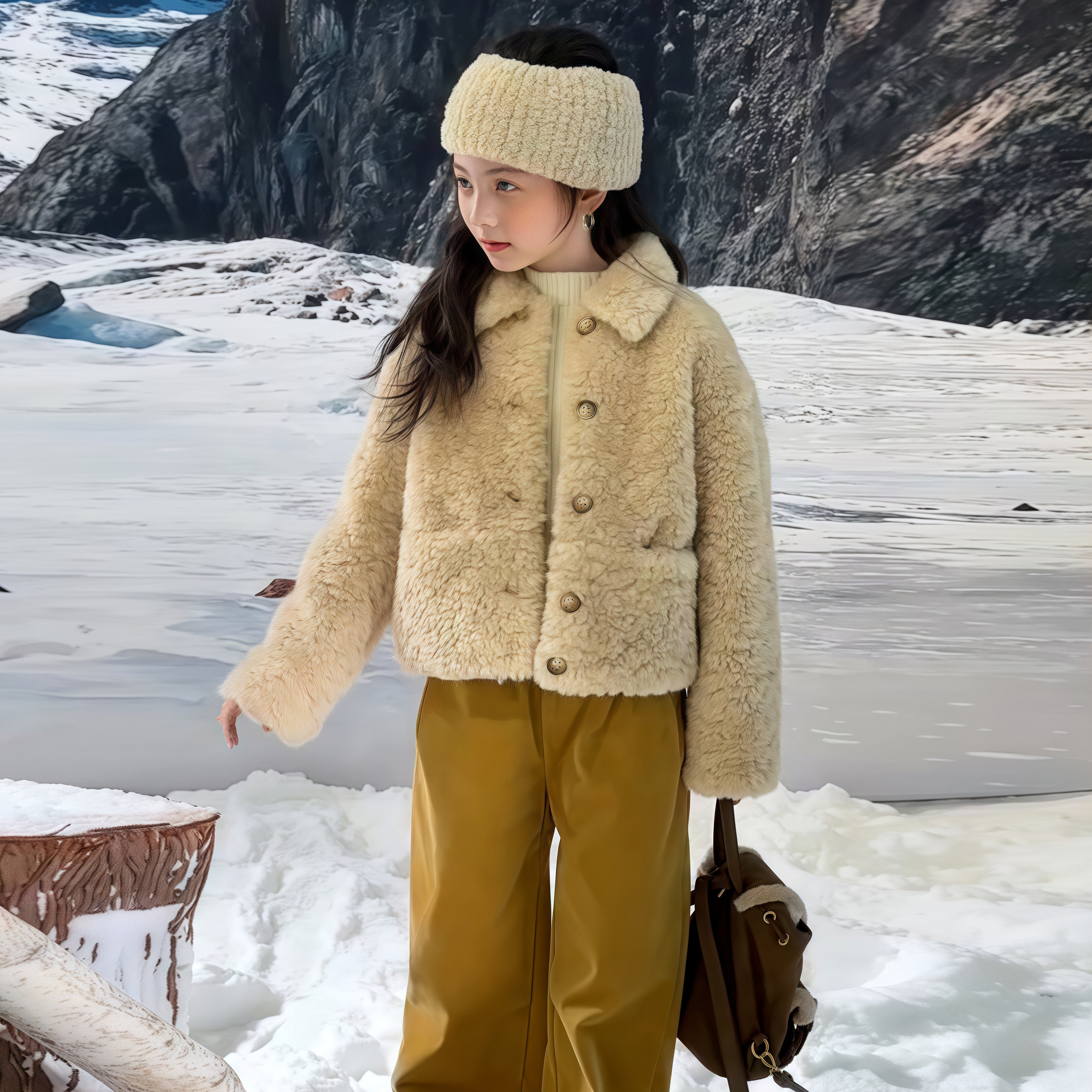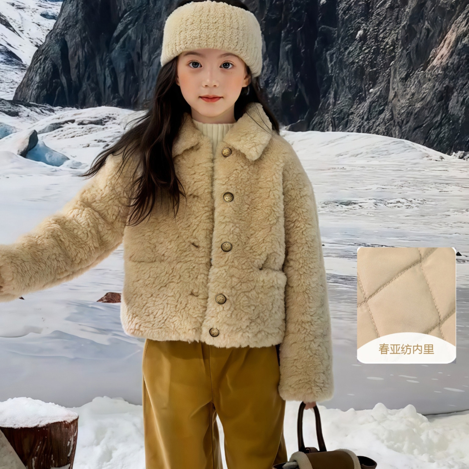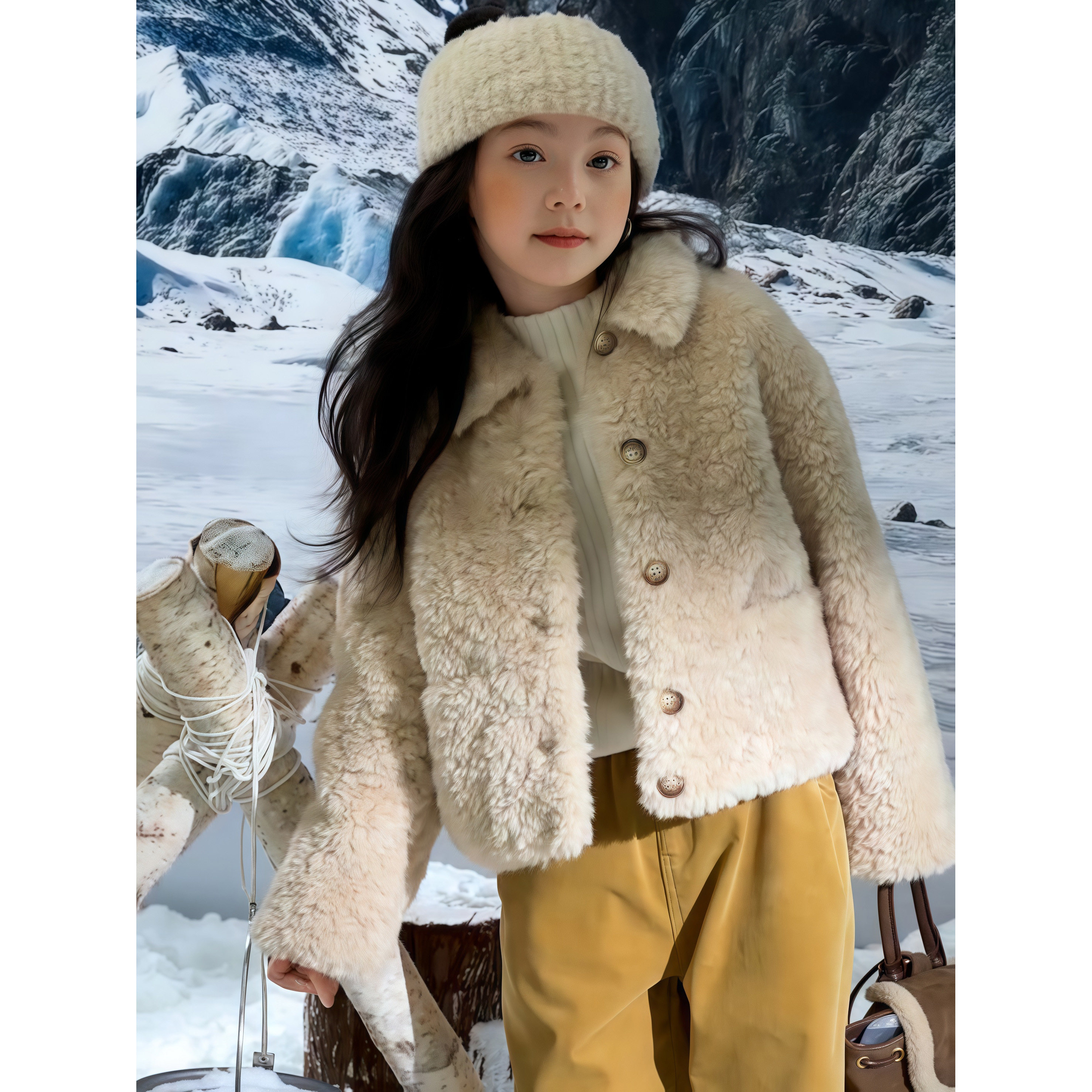 📚 女童冬装皮草外套2025新款中大儿童洋气韩版方领仿羊羔毛加棉大衣