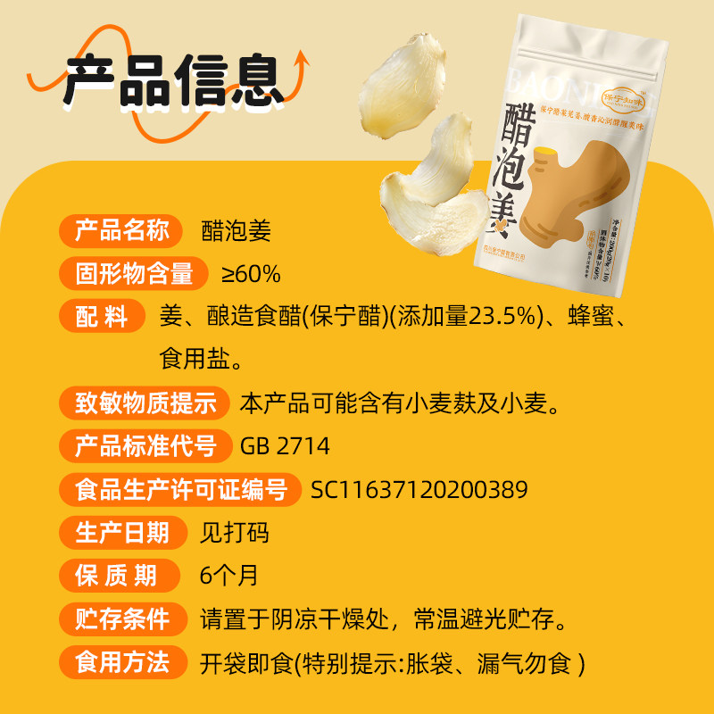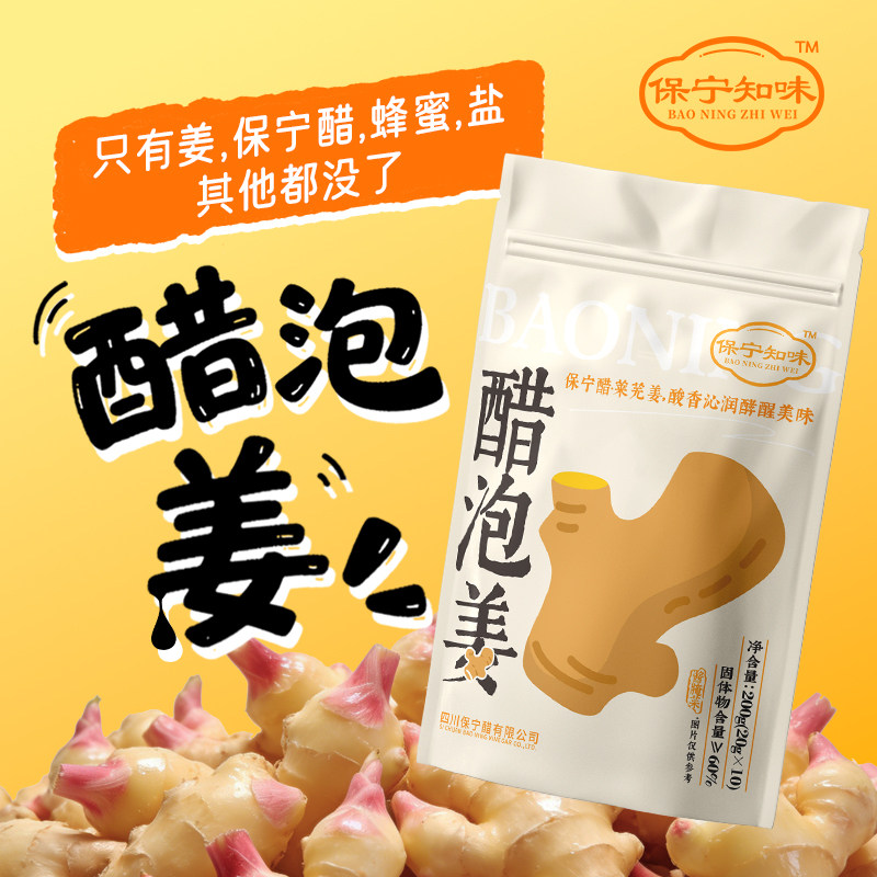 📚 保宁醋泡姜200g陈醋泡姜片腌制生姜姜丝香醋芽仔姜泡菜酱菜即食菜