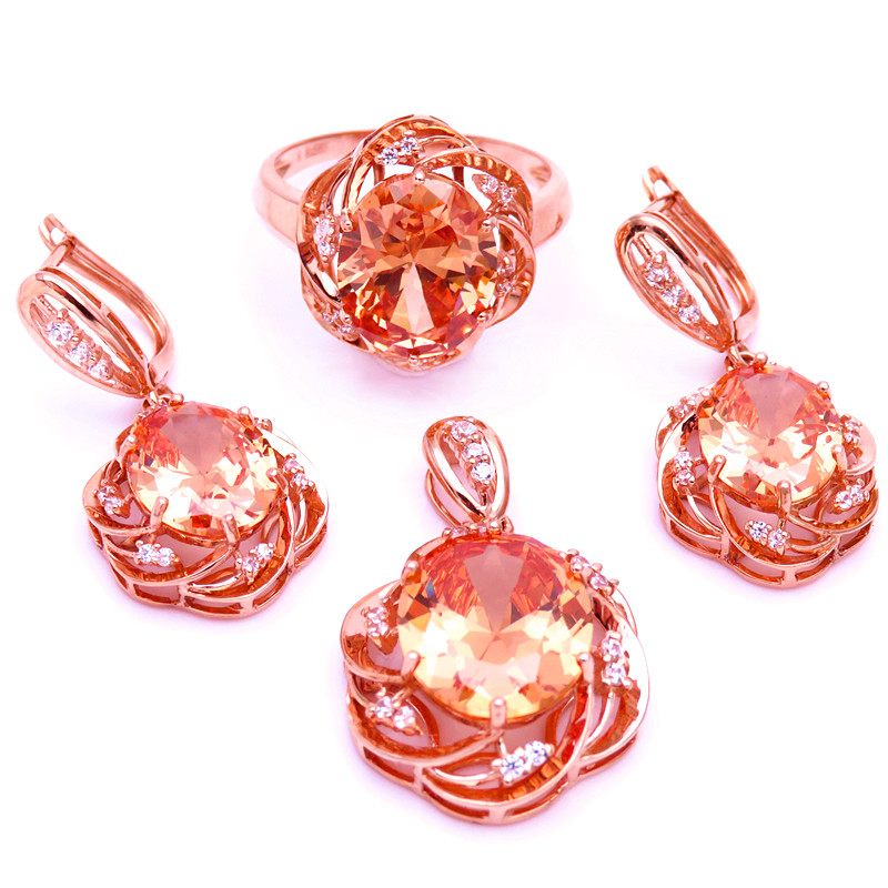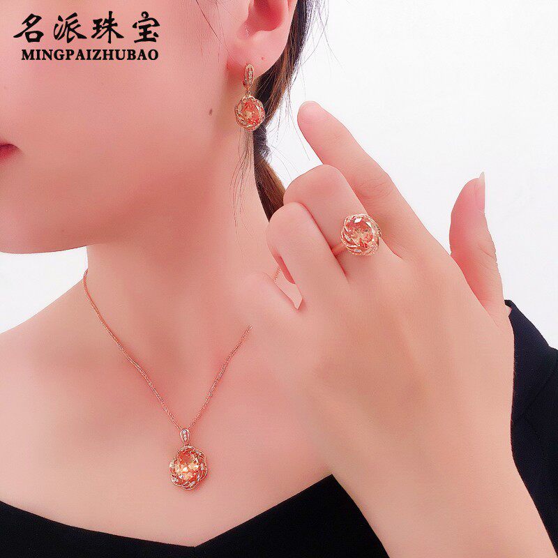 📚 满洲里名派珠宝 真品14K彩金俄 罗斯585紫金豪华版香槟色宝石套装