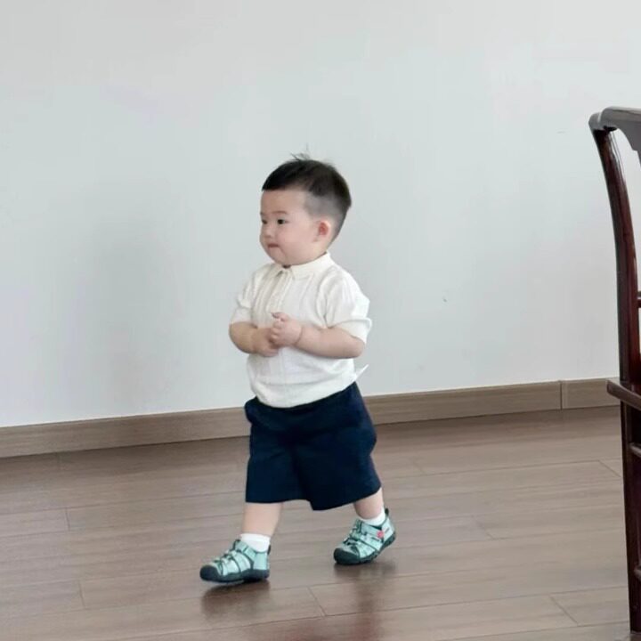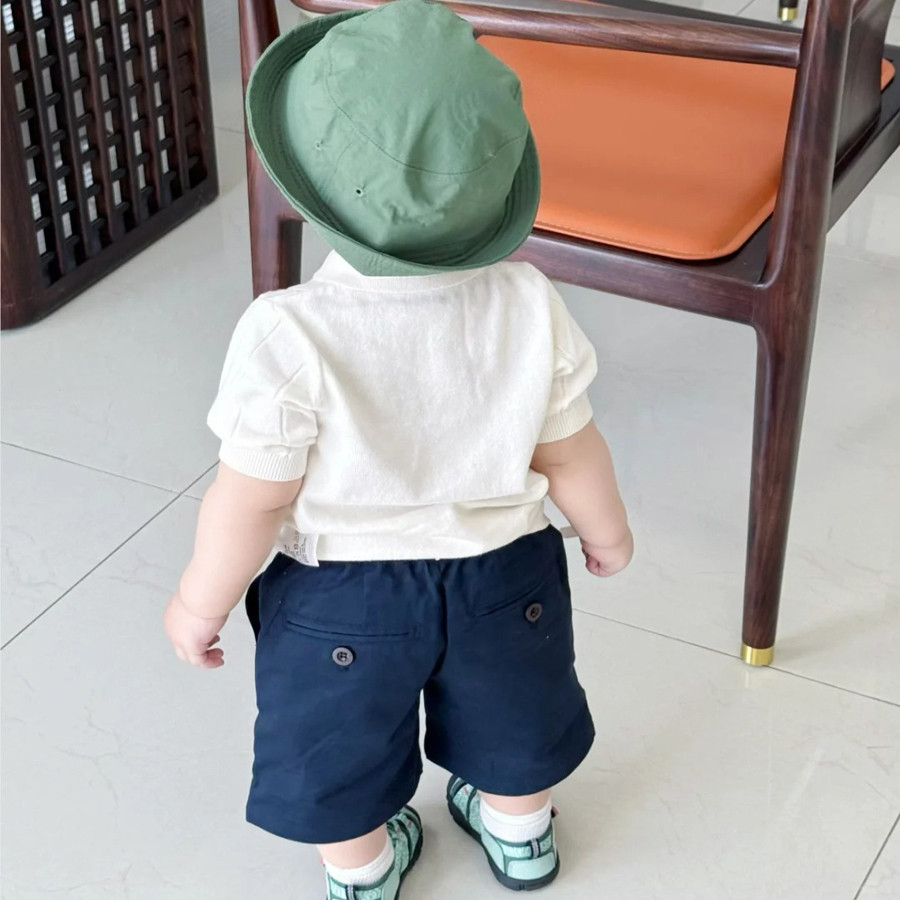 📚 婴儿衣服夏季薄款套装男宝宝翻领短袖T恤短裤两件套百搭纯色上衣