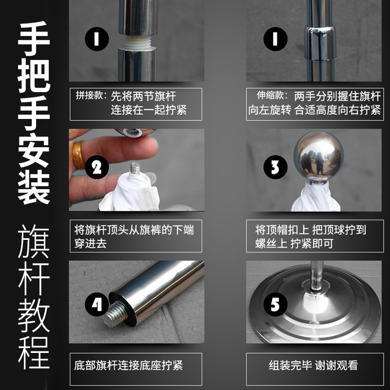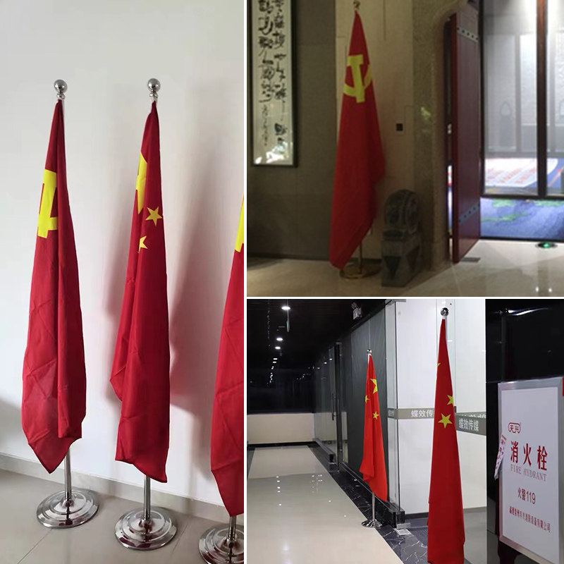 📚 加厚2.6米立式会议办公室内落地旗杆不锈钢红旗党旗国旗座旗架 2.6m伸缩旗架座国庆装饰摆件订制定做收缩旗杆