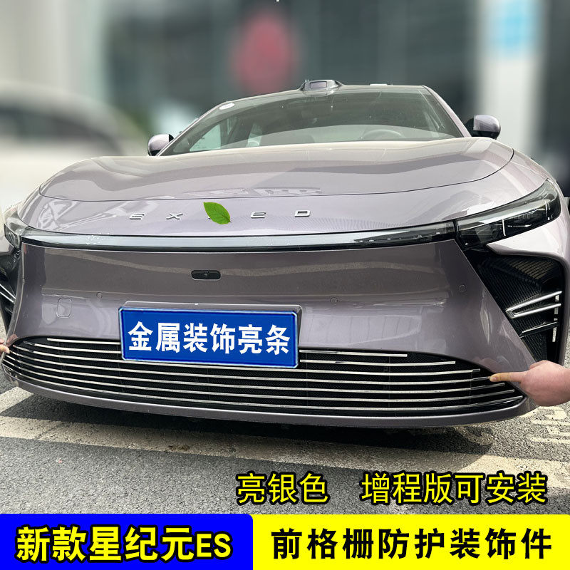 📚 星途星纪元ES增程版中网防虫网前杠专用改装饰条汽车用品配件亮条