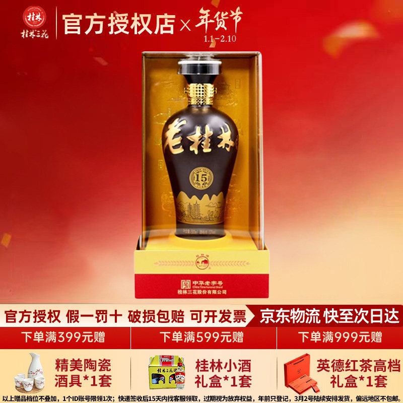 📚 桂林三花酒 53度 15陈酿老桂林 500ml纯粮米香型白酒春节年货送礼