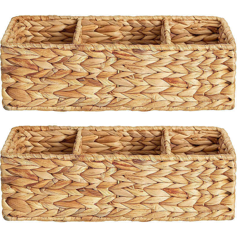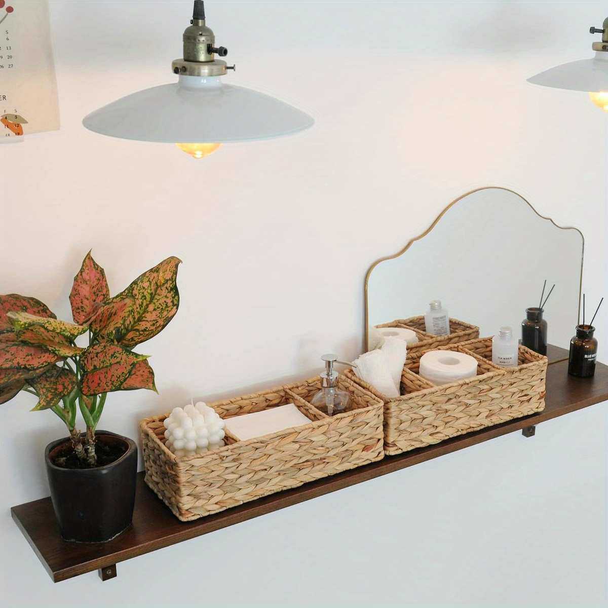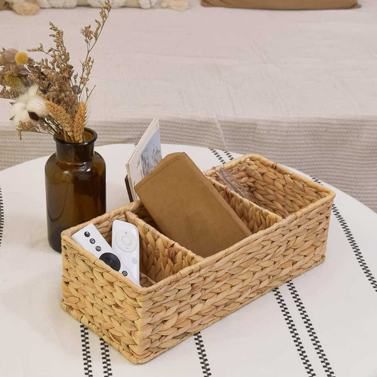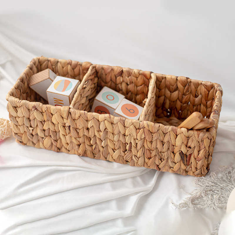 📚 日式田园风胡芦草编织带隔断式长形桌面收纳筐杂物篮小物件整理筐