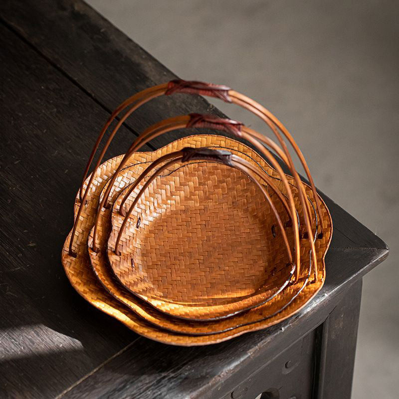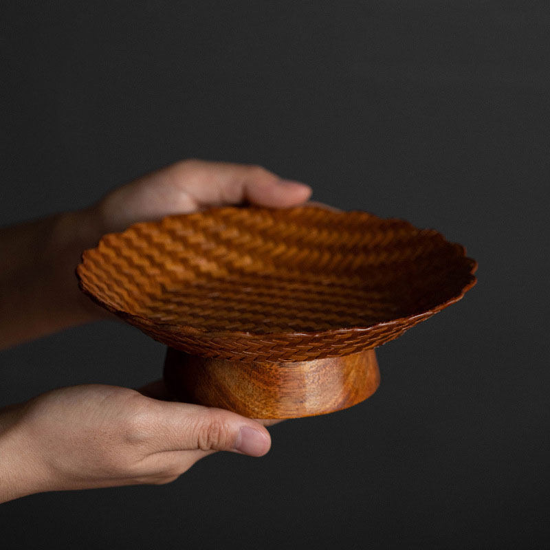 📚 茶点盘精致轻奢中式禅意茶店茶室小吃点心碟高脚果盘手提竹编果篮