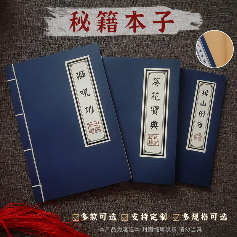 🎉亲们,今天我要跟大家分享一款超级特别的宝贝——定制武功秘籍武林秘籍3种尺寸手工缝线古代线装本仿古订制笔记本!📚