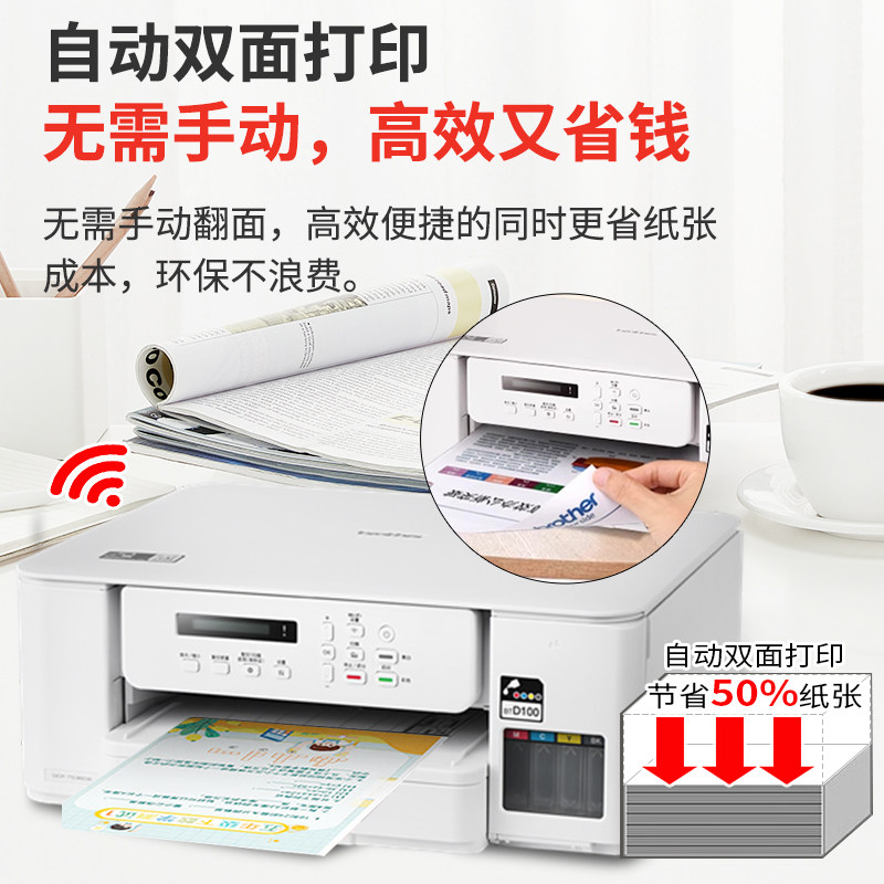 📚 兄弟自动双面DCP-T536DW打印机彩色喷墨无线手机5Gwifi打印复印扫描一体机家用小型学生作业照片办公A4墨仓