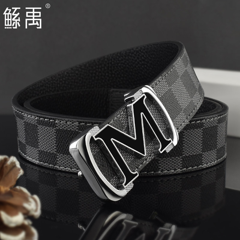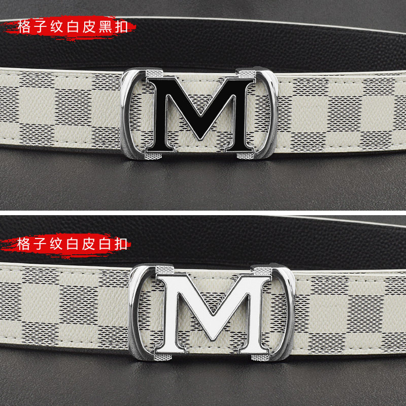 📚 潮流M字母皮带男士潮流平滑扣年轻人简约时尚百搭学生夜店小裤带