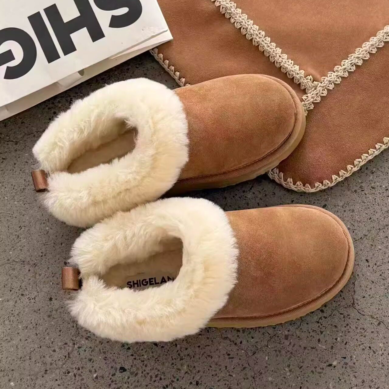 📚 诗歌兰雪地靴女2025冬新款皮毛一体韩版厚底包头外穿加绒毛毛拖鞋