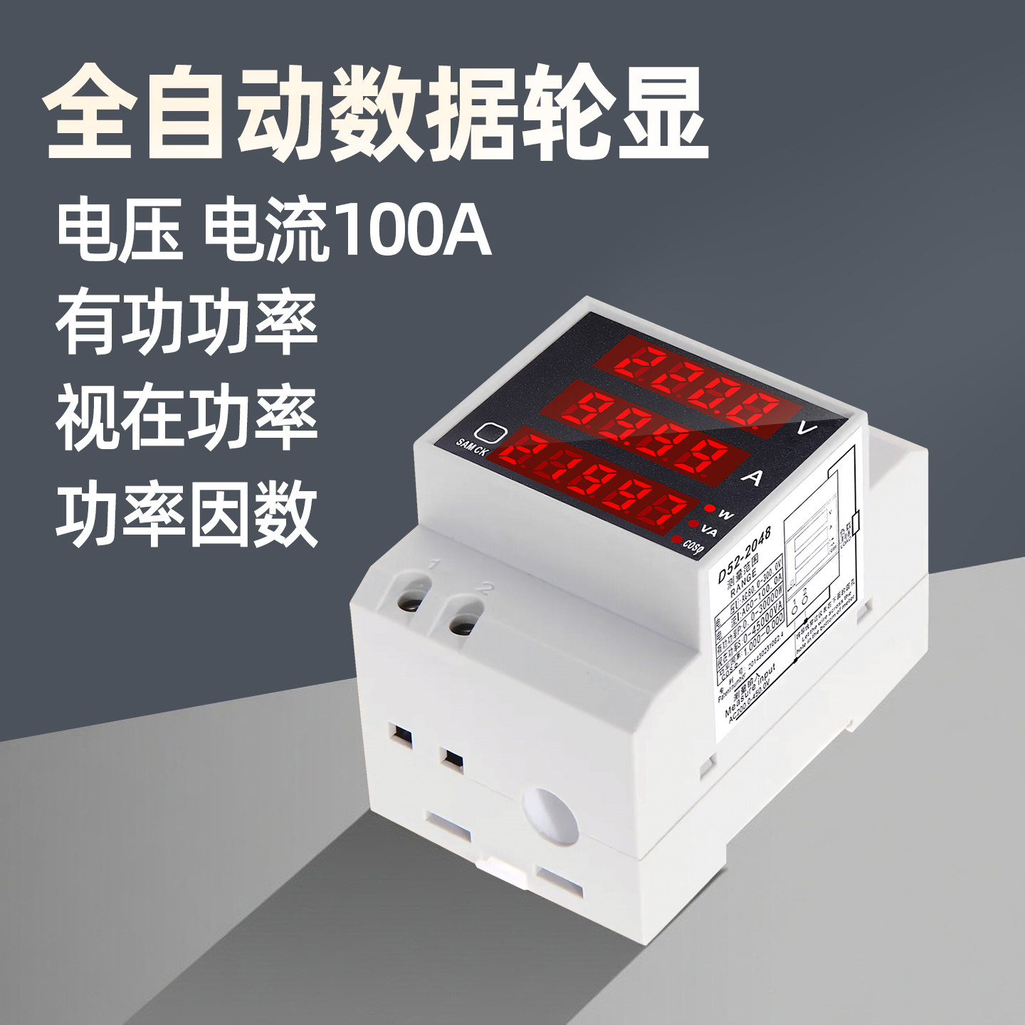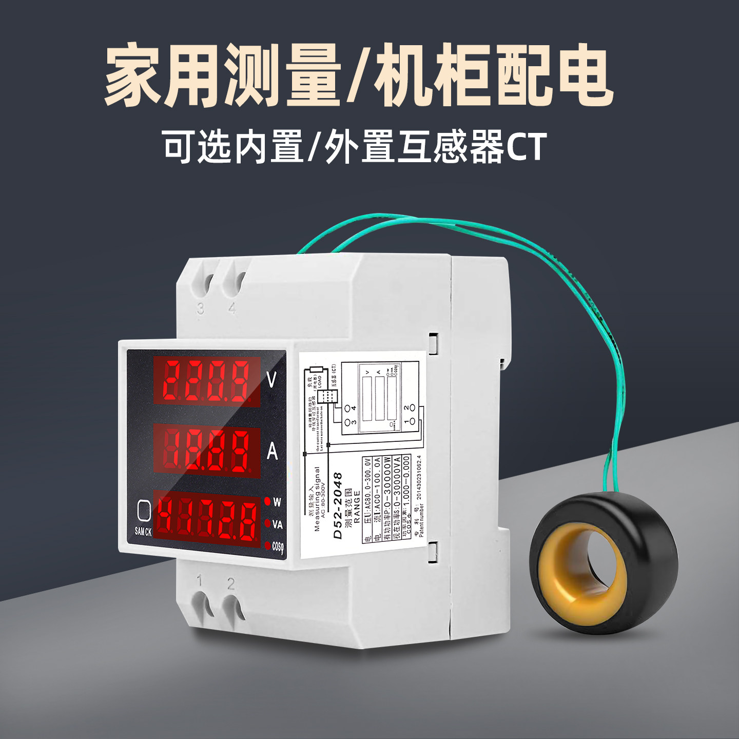 📚 导轨电表功率表交流数显220v电压表电流表功率因数测试仪D52-2048