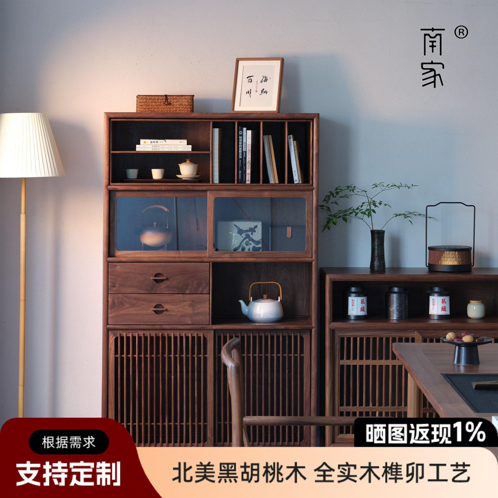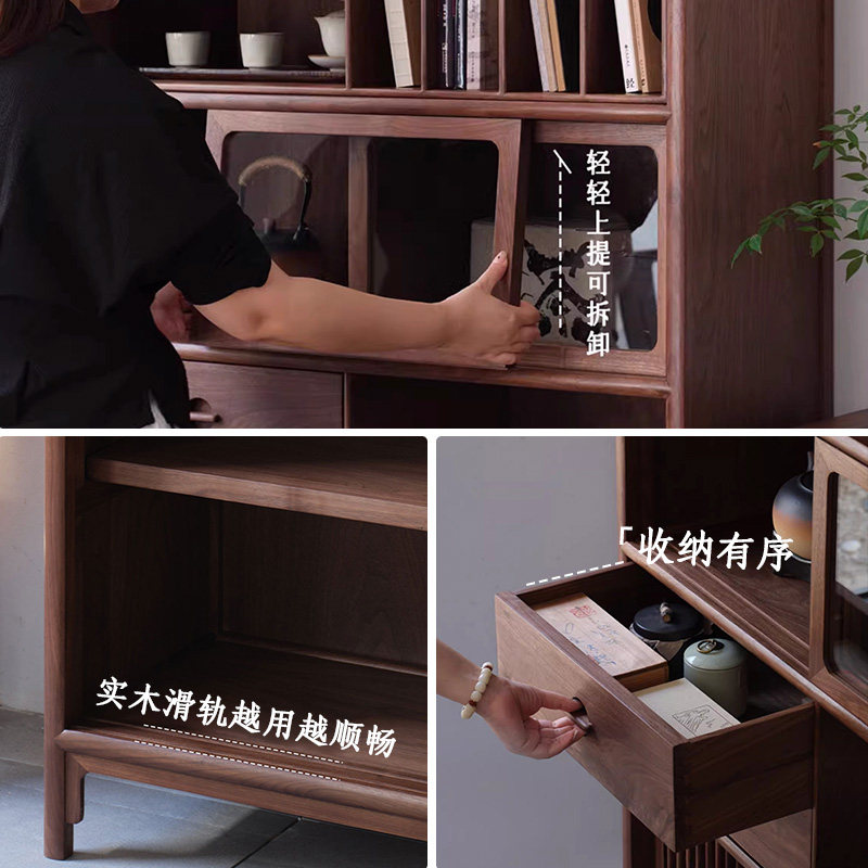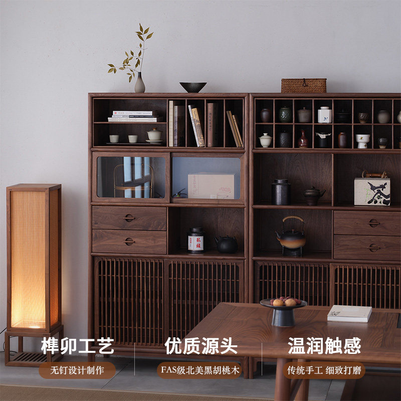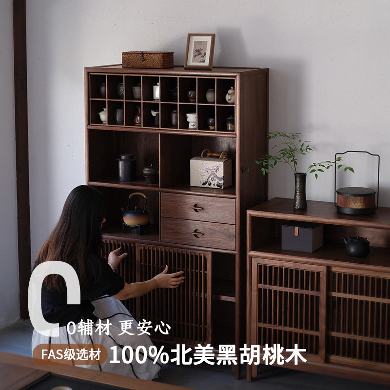 📚 中式博古架胡桃木实木博古柜茶叶茶具落地收纳置物柜新中式茶柜