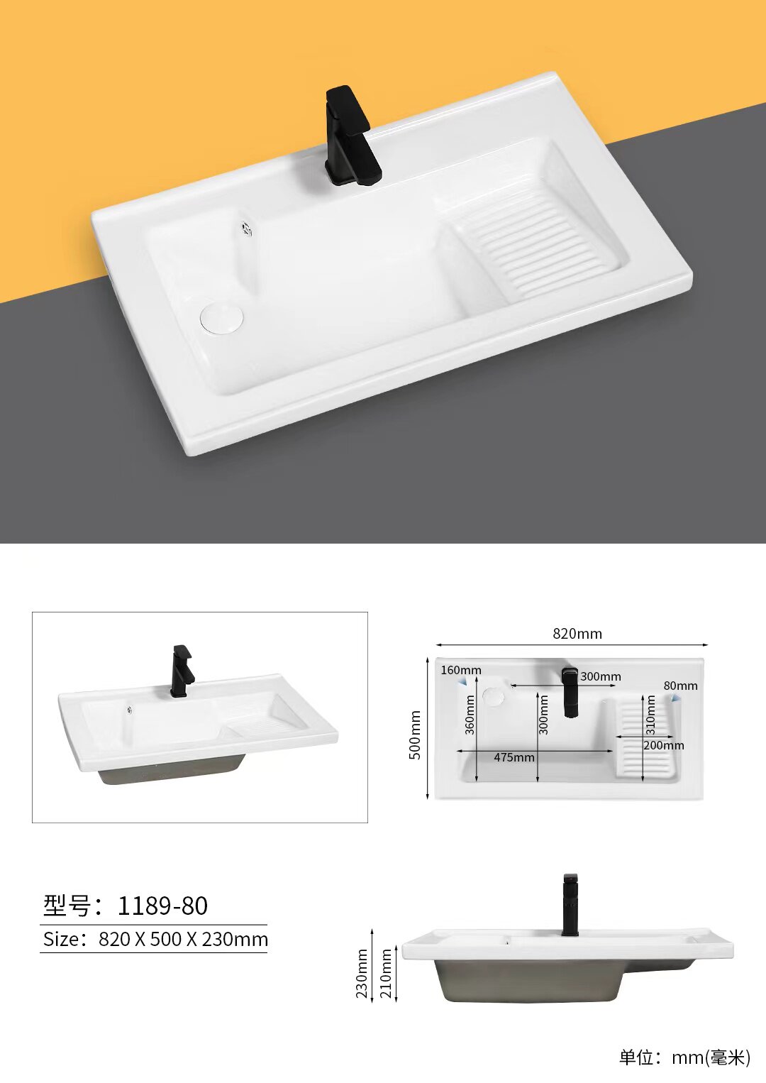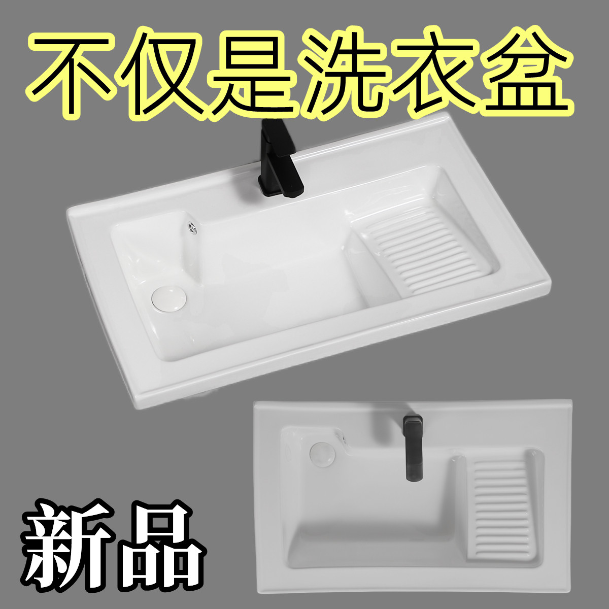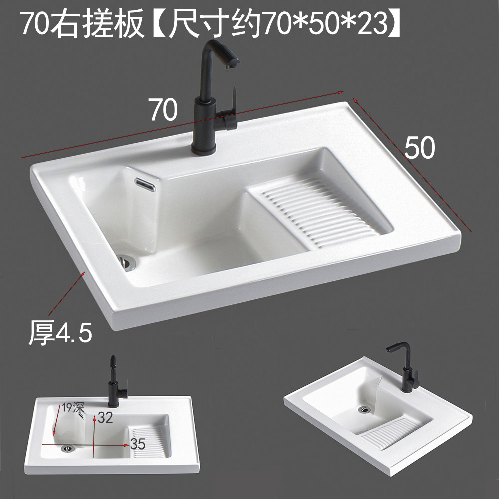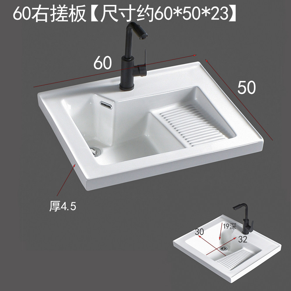 📚 阳台洗衣盆带搓板陶瓷洗衣池右边搓板浴室柜台盆50宽新款侧角排水