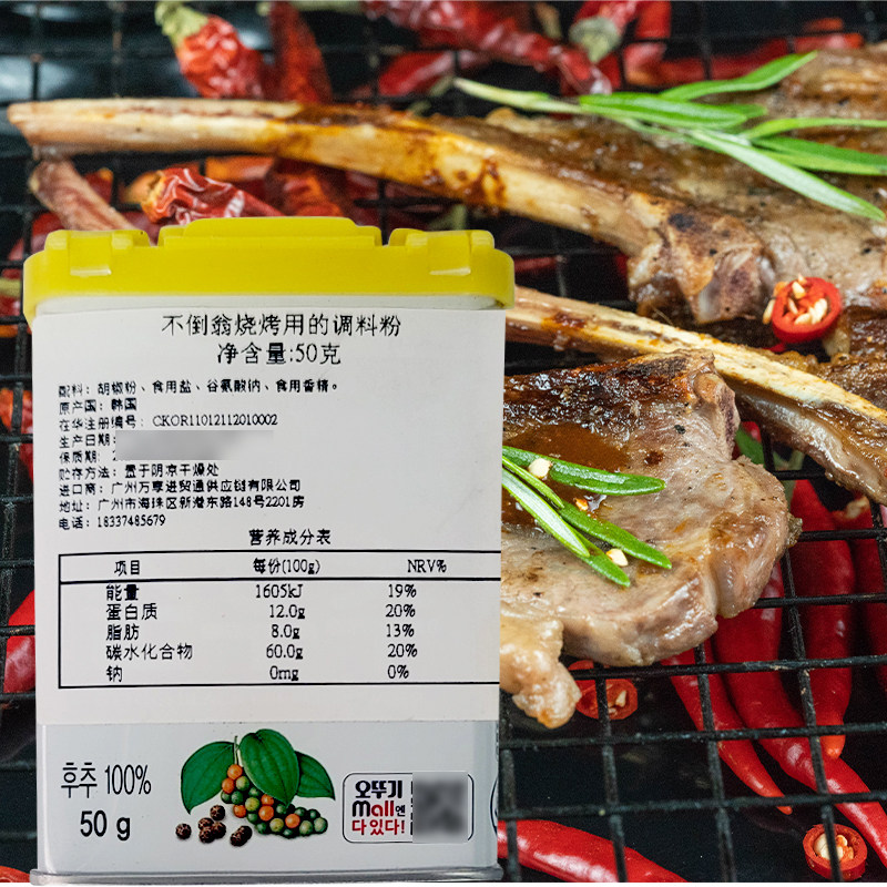 📚 韩国进口不倒翁纯黑胡椒粉50g调味料原味胡椒面家庭装拌撒料佐料