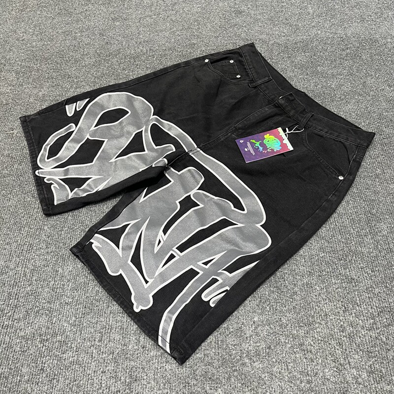 📚 Synaworld Jeans美式高街嘻哈潮流夏季休闲印花做旧洗水牛仔短裤
