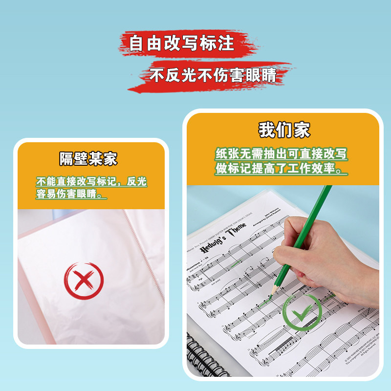 📚 A4新款谱夹子乐谱夹可修改不反光加厚乐队演奏曲谱夹册提琴钢琴谱夹册文件夹资料册日式简约活页可改写可爱A3
