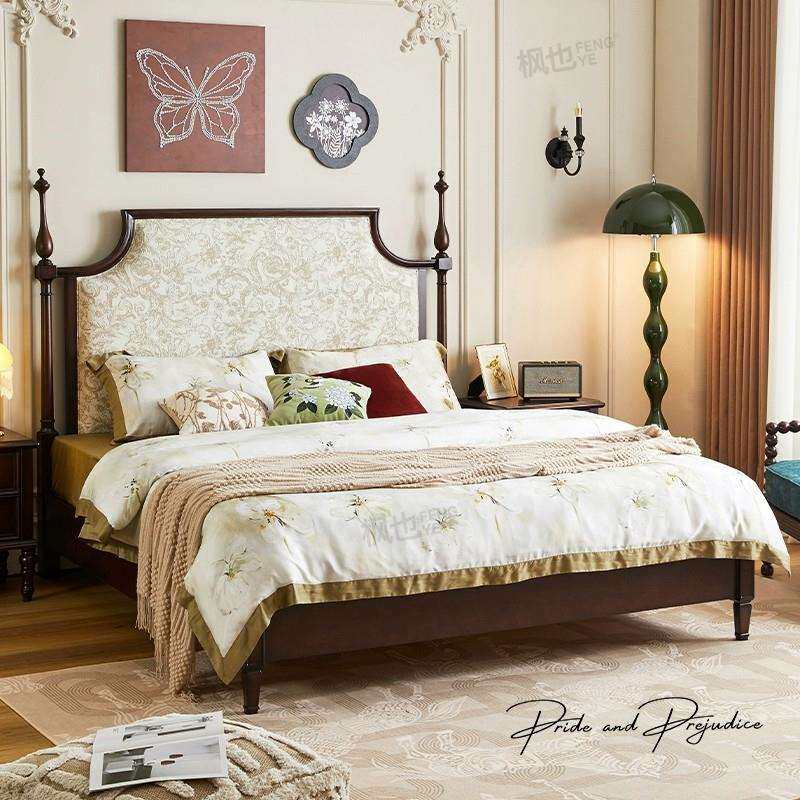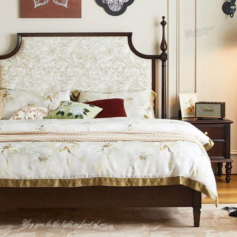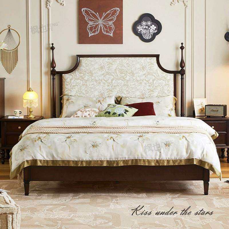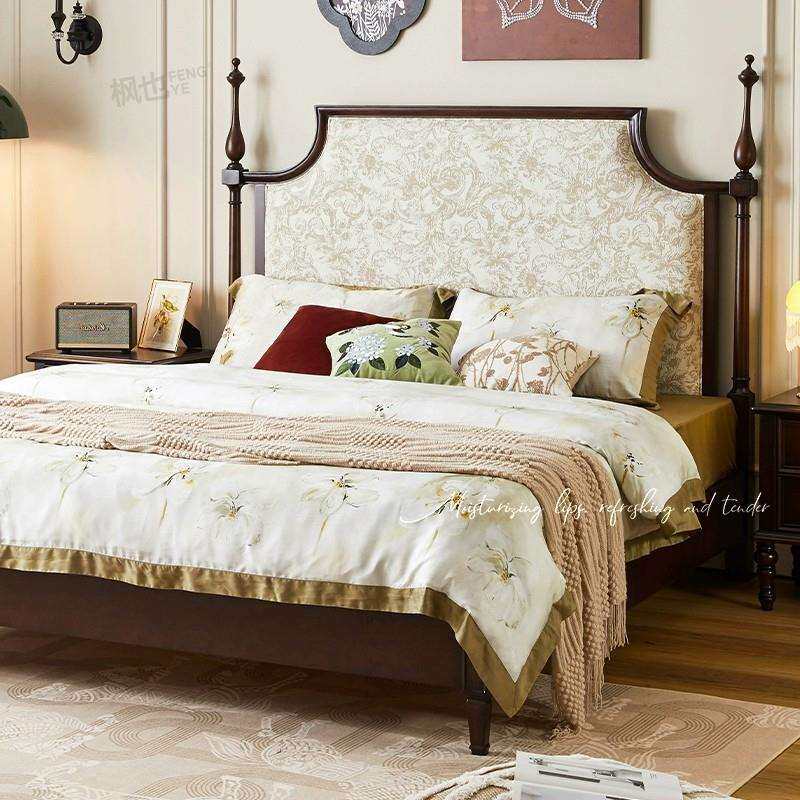 📚 实木床美式复古主卧大床中古风法式双人床樱桃木婚床
