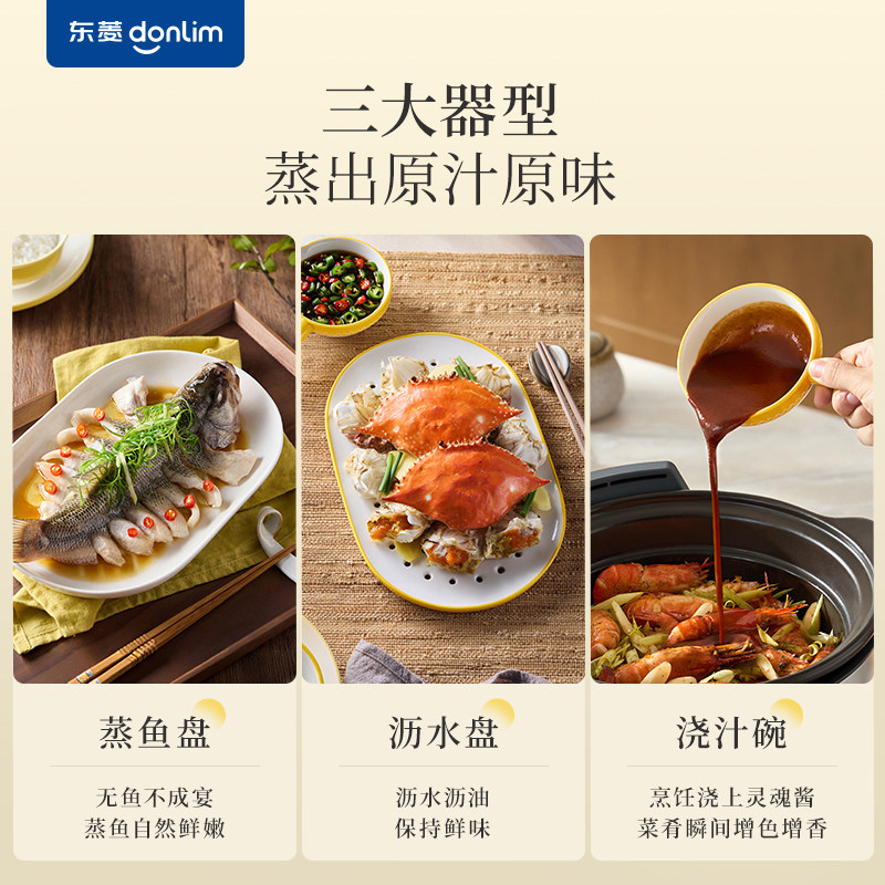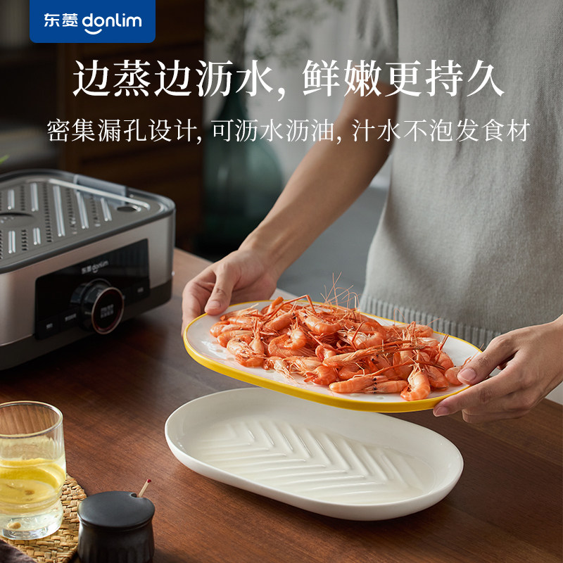 📚 东菱陶瓷蒸鱼盘套装沥水盘浇汁碗电蒸锅专用餐具蒸菜蒸鱼蒸盘