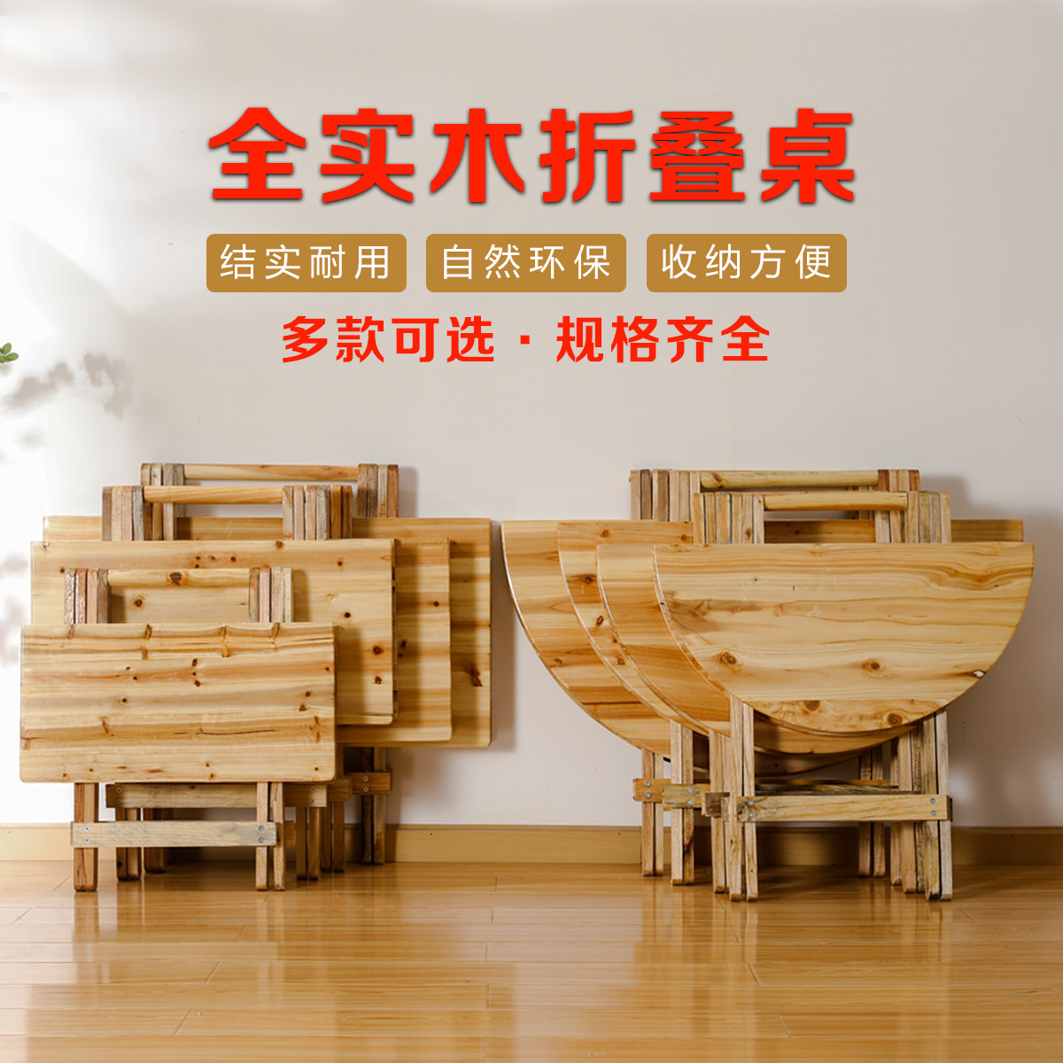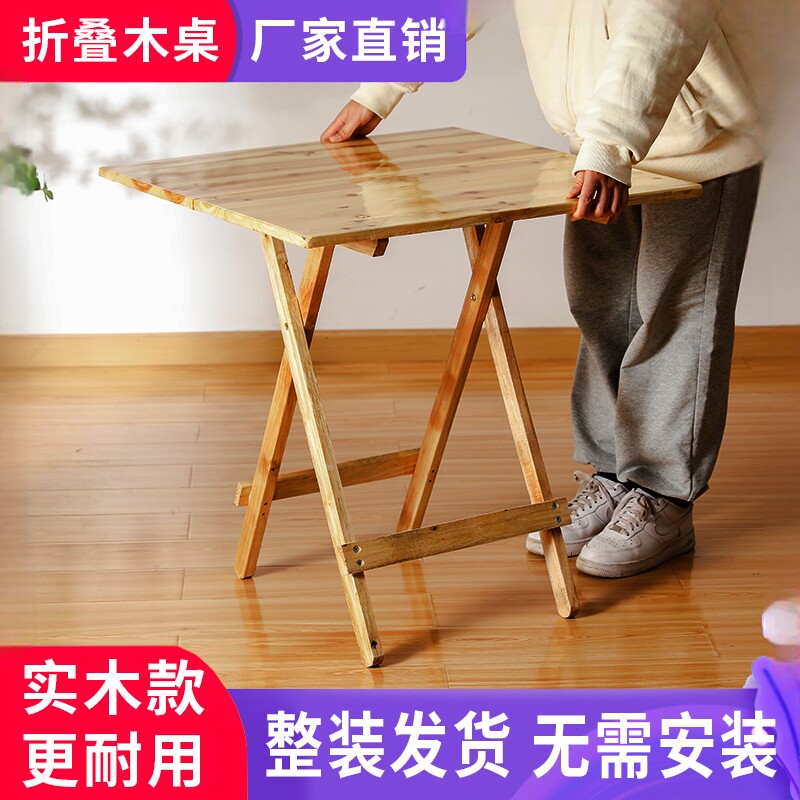 📚 免安装实木折叠桌子家用简易小桌子餐桌学习桌摆摊商用餐饮店便携