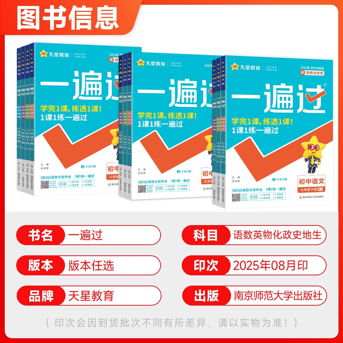 📚 2026春一遍过初中七年级八九年级下册上册语文数学英语物理化学政治历史地理生物人教版北师大版初一二三同步训练试卷必刷题练习册
