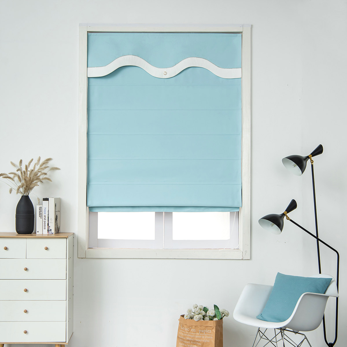 📚 素色简约布艺罗马帘窗帘全遮光升降提拉折叠帘飘窗窗帘短帘可电动